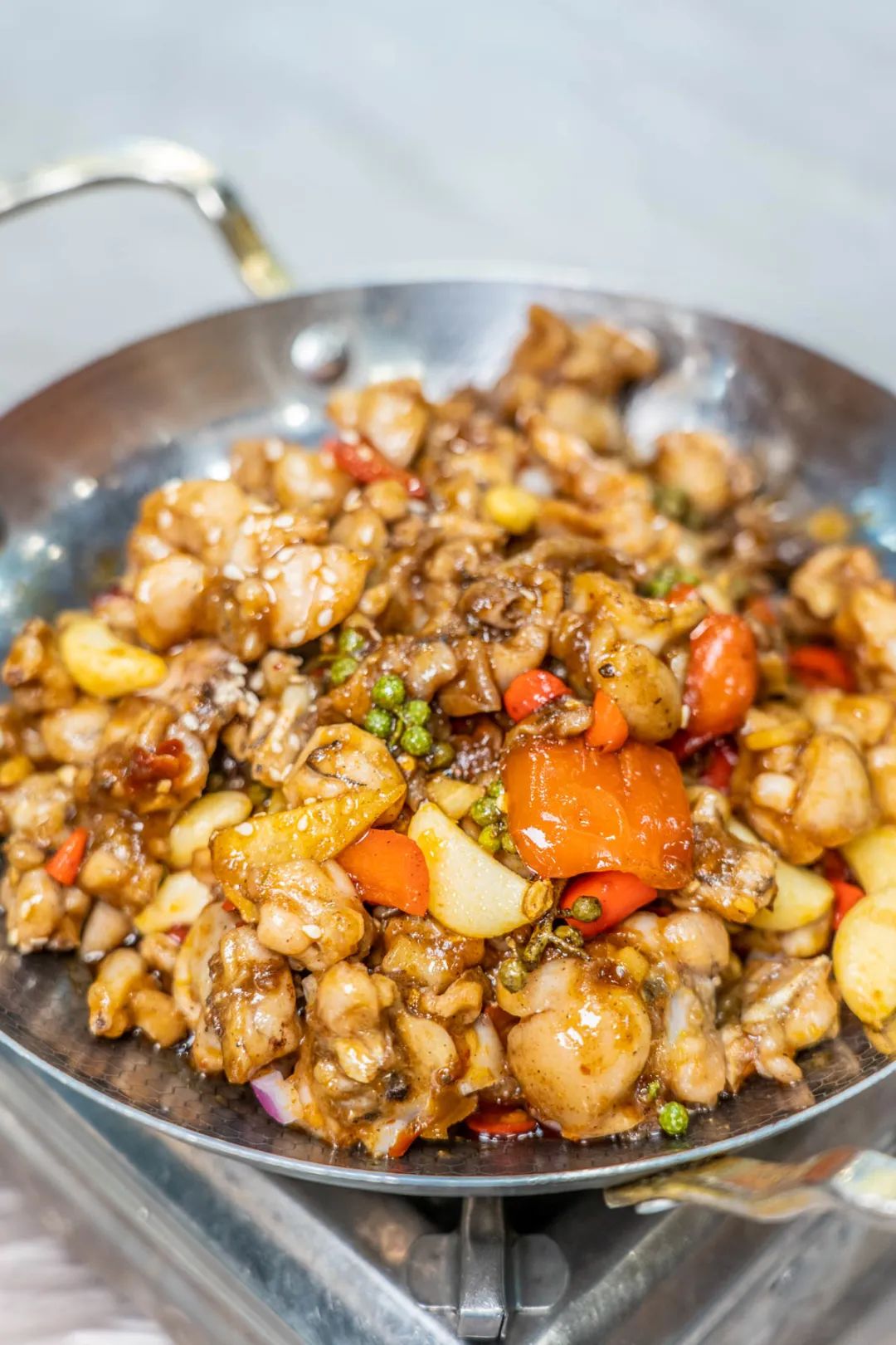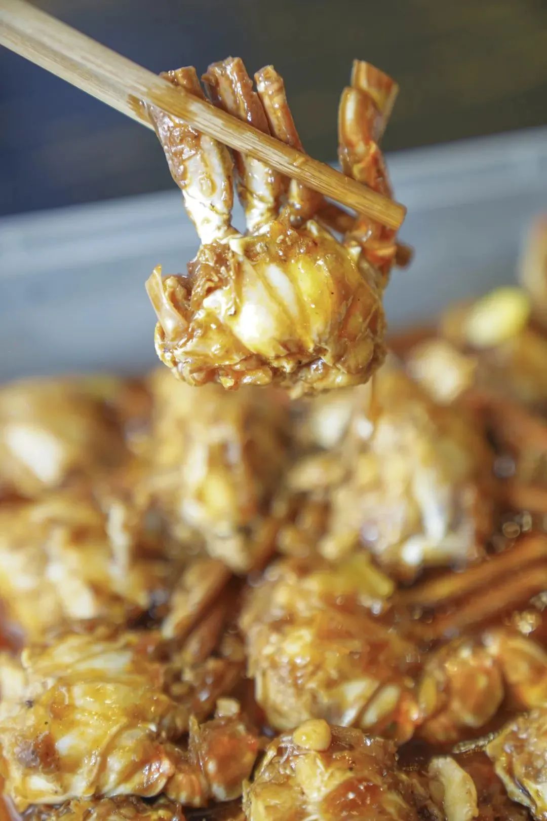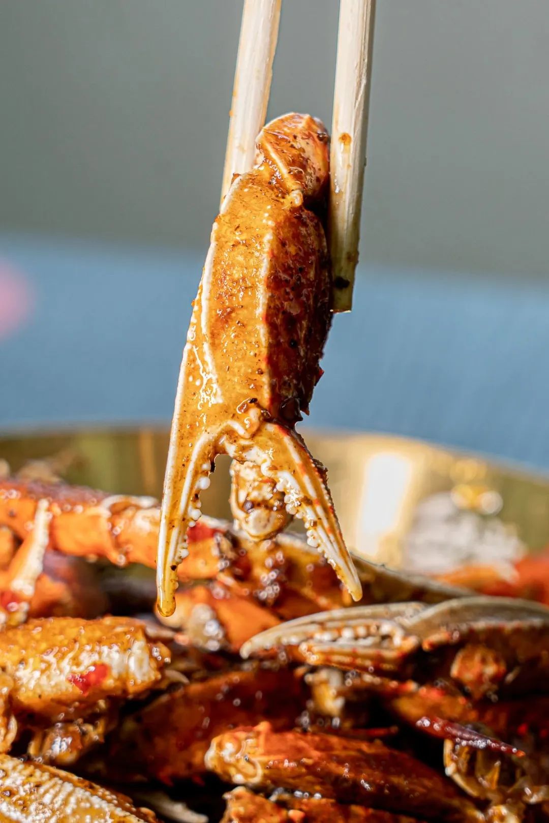在厨师精心翻炒后,蟹壳的表面沾满了浓郁的汤汁,吮吸一口相当上头啊。咬开蟹钳,雪白的蟹肉十分饱满,不一会,蟹壳的汤汁都会流进到蟹肉里,微微的热辣流荡在舌尖,回味无穷。一口小酒一口蟹钳,何以解忧唯有蟹神。