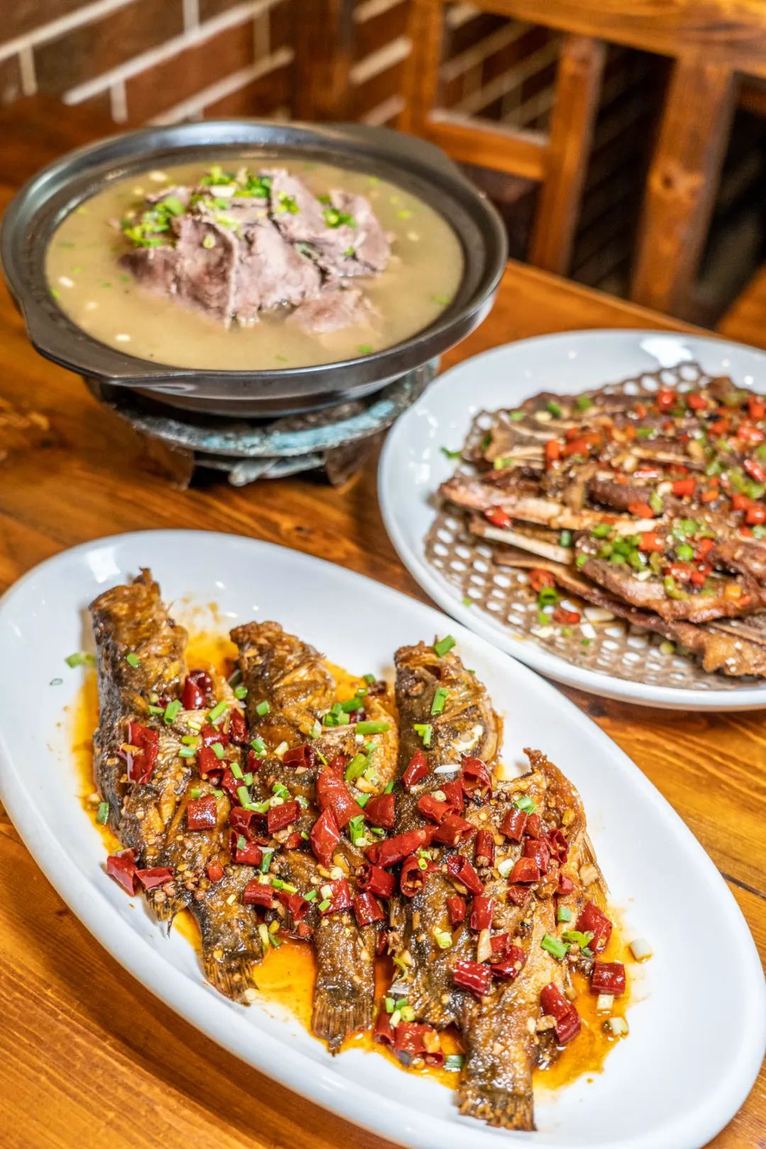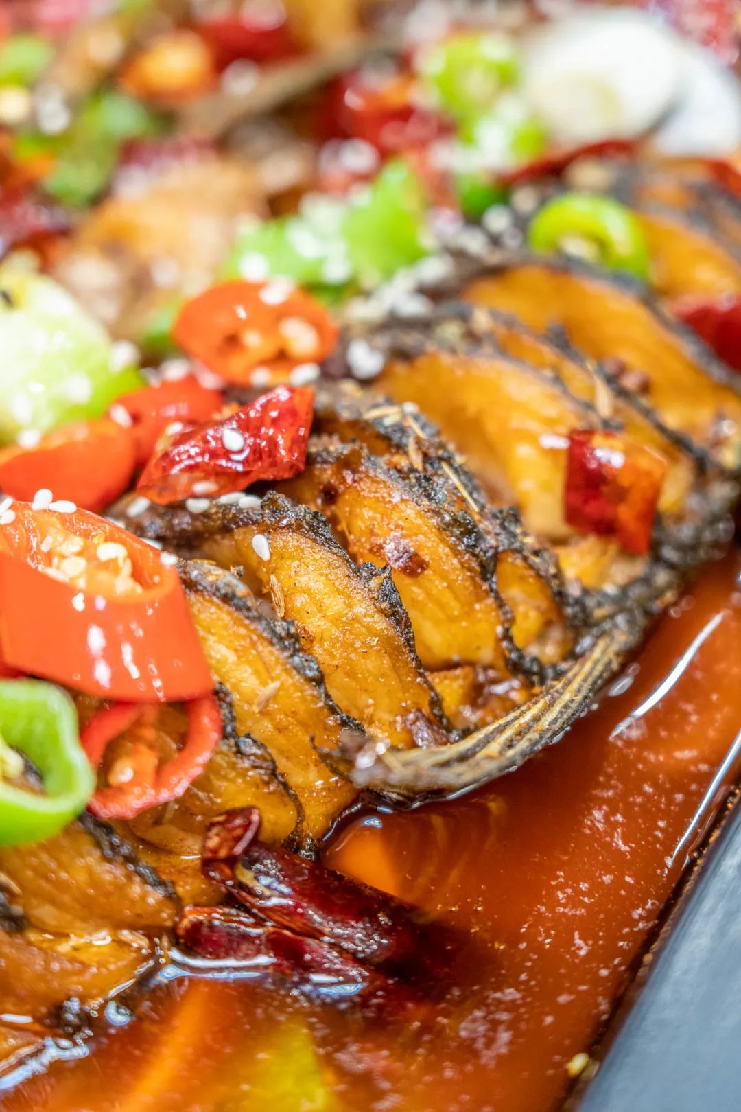 他家的烤鱼一律现杀现做,刚刚端上桌,就散发出浓浓香气,引得隔壁左右还没上菜的食客们仰着脑袋闻味。