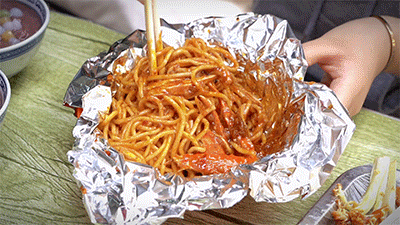 螃蟹块头大,内里已全部清理干净,一口咬下去,全是饱满新鲜的蟹肉,可以放心地大快朵颐。再来上一份热干面,把剩下的灵魂酱汁运用起来,好吃到砸吧嘴。
