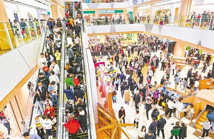 11月5日,许多市民游客涌入武汉江夏永旺梦乐城购物中心游玩打卡购物。当日,正式运营的永旺梦乐城购物中心人气旺,商场的停车位一位难求。