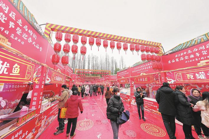 1月18日是农历腊月初八。“腊八”一过,年味也越来越浓。1月19日,武汉市东西湖区走马岭街首届食品企业年货节开幕。本次展会活动将从1月19日持续至1月24日,参展企业超过35家。现场设置了特色商品区、美食摊位,不少居民满载而归。