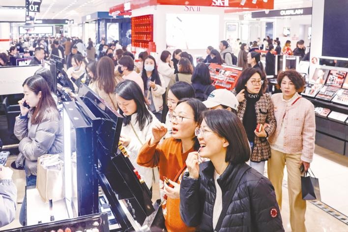 3月8日,在武商MALL,各大品牌借势发力,开启花式促销,吸引了不少女性消费者,带动“她经济”持续升温,推动春季第一波消费热潮。