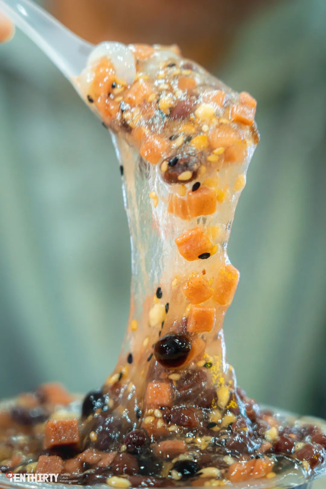 白钟元打卡的蒲春蓉藕粉,算得上是元老网红。被藕粉粘稠搅拌的配料,一口吃遍山楂、红豆、芝麻、葡萄干等小料,建议两人分食,否则没地儿塞别的了。