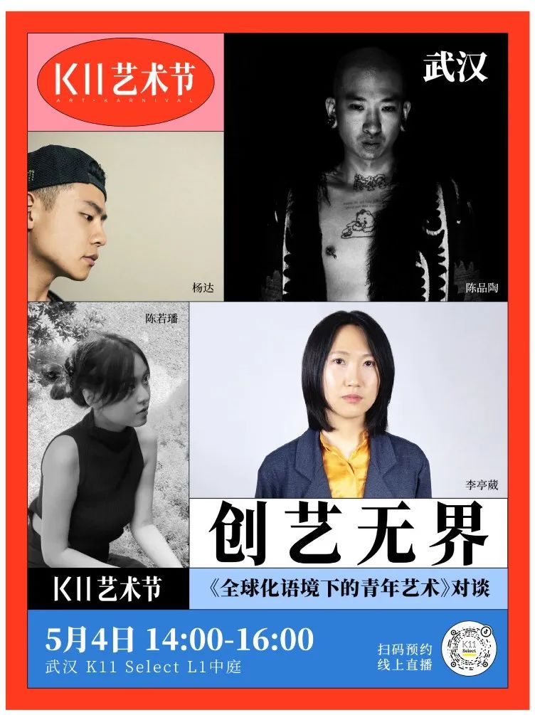 五月四号(第五场演唱会当天),武汉K11 Select将邀请到4位青年艺术家赴现场,讨论全球化、国际背景下的青年艺术创作。