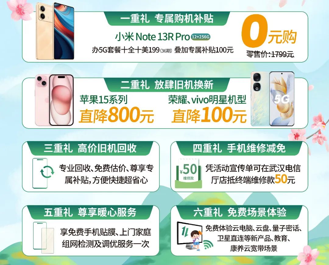 武汉电信旗下所有实体厅店将长期承接旧机回收维修以及上门服务,继续秉承“用户至上、用心服务”的理念,为广大用户带来更多便捷、高效、贴心的服务体验,共绘绿色新篇章。