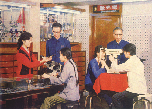 20世纪80年代,江汉路精益眼镜店营业员为顾客验光配镜