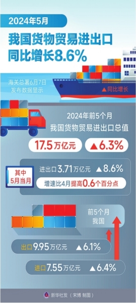 2024年5月 我国货物贸易进出口同比增长8.6%