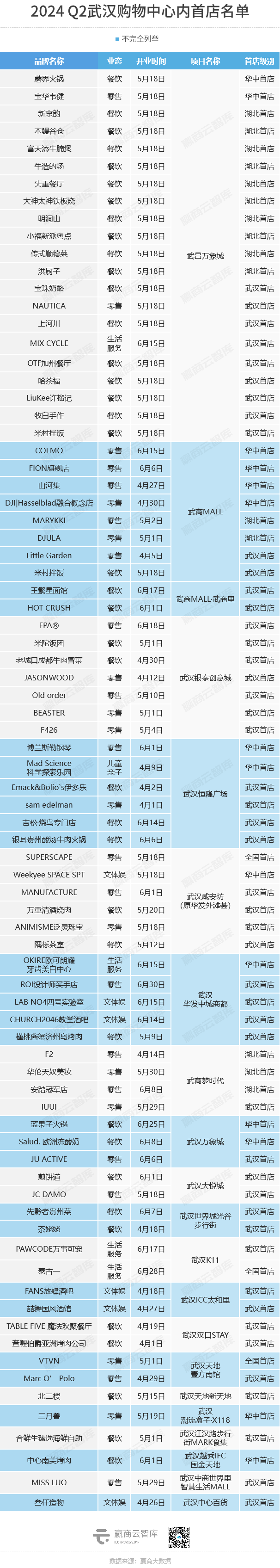 1 分首店类型看:全国首店3家,华中首店14家,湖北首店15家,武汉首店48家;