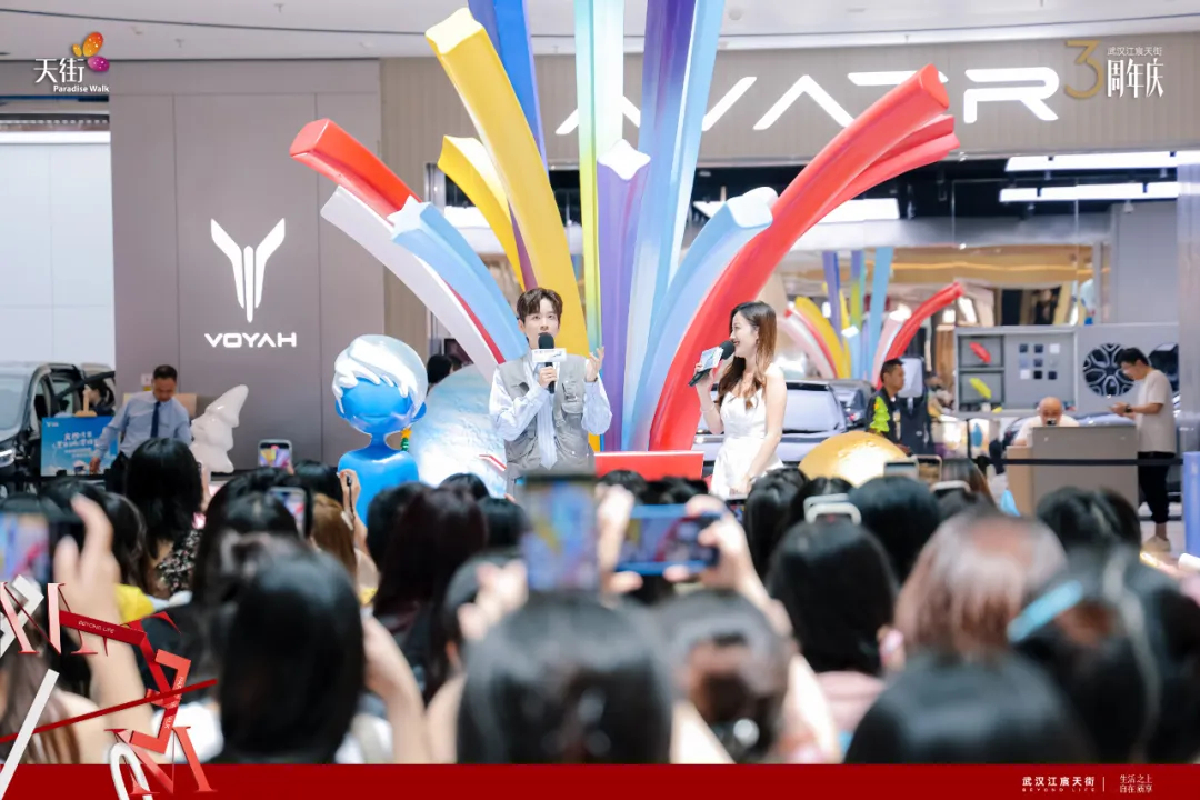 在武汉江宸天街开业三周年之际,张皓宸、胡浩亮等明星闪亮莅临,更将线上话题热度及线下人气指数推升至新的高度,为期2日的周年庆客流突破20万,「汉口青年路上的流量王者」,实至名归。