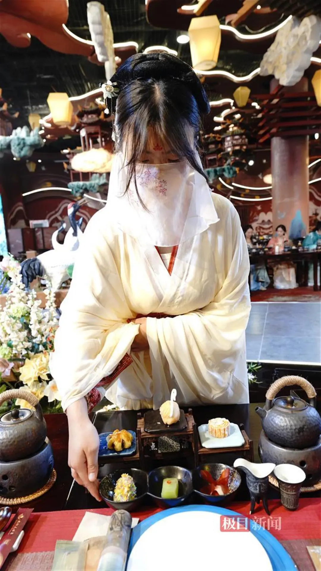 身着汉服,蒙着面纱的服务员为顾客上菜打造餐饮业差异化优势