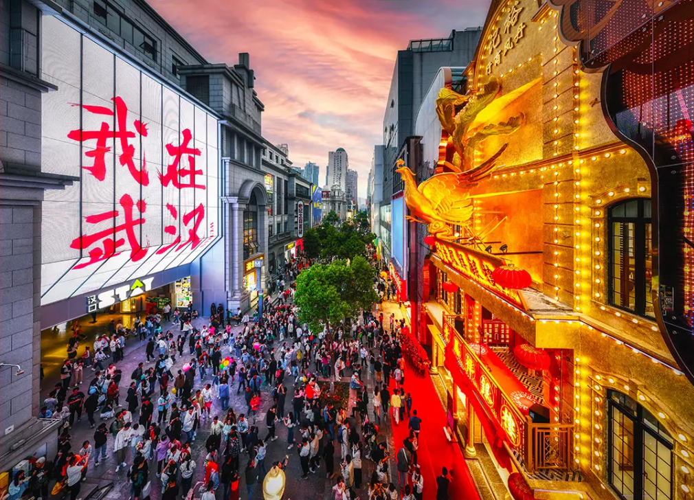 社交媒体上,拍摄门店的几十秒短视频点赞、转发超百万,网友赐名江汉路“显眼包”,成为江汉路上当之无愧的新地标、“金”地标,拉动了武汉的黄金消费。