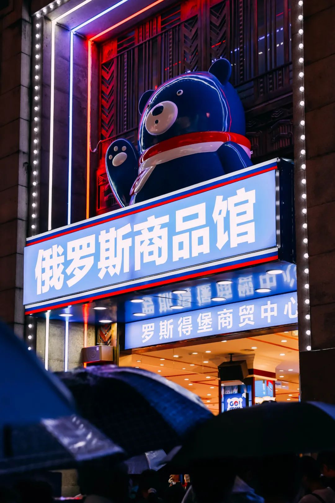 看过金碧辉煌的显眼包,江汉路还有不少走可爱路子的显眼包。上个月,江汉路步行街新生代“顶流”——俄罗斯商品馆登场,憨态可掬的显眼包大蓝熊向过往游客挥舞肉爪,“乌拉~”ฅʕ•̫͡•ʔฅ!