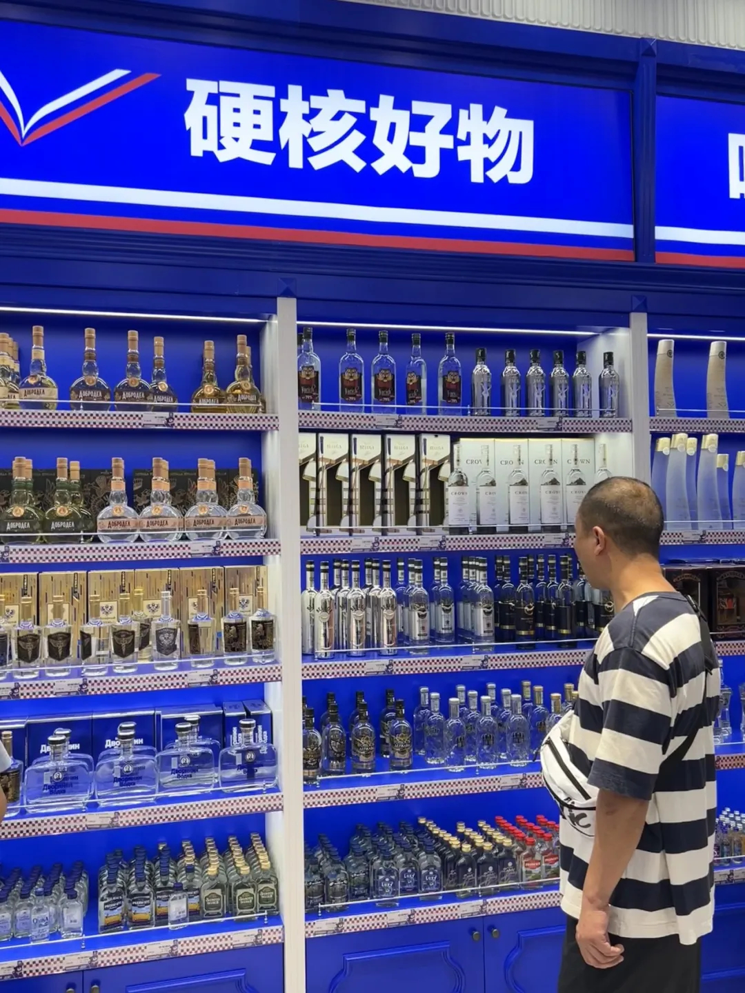 最震撼的当属一整面墙的俄罗斯特产伏特加,不同风味、不同度数、不同包装......只能说,不愧是战斗民族!