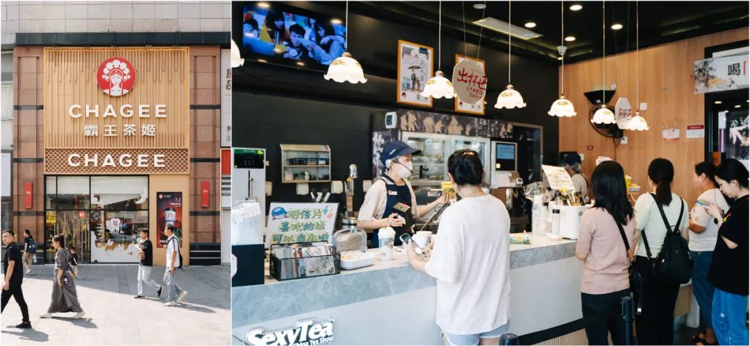 1F对外茶饮区聚集多家网红品牌如星巴克、茶颜悦色、茶颜悦色游园会店、霸王茶姬、奈雪、瑞幸咖啡、爷爷不泡茶等,无论假期还是工作日,都吸引不少年轻人尝鲜、小聚。