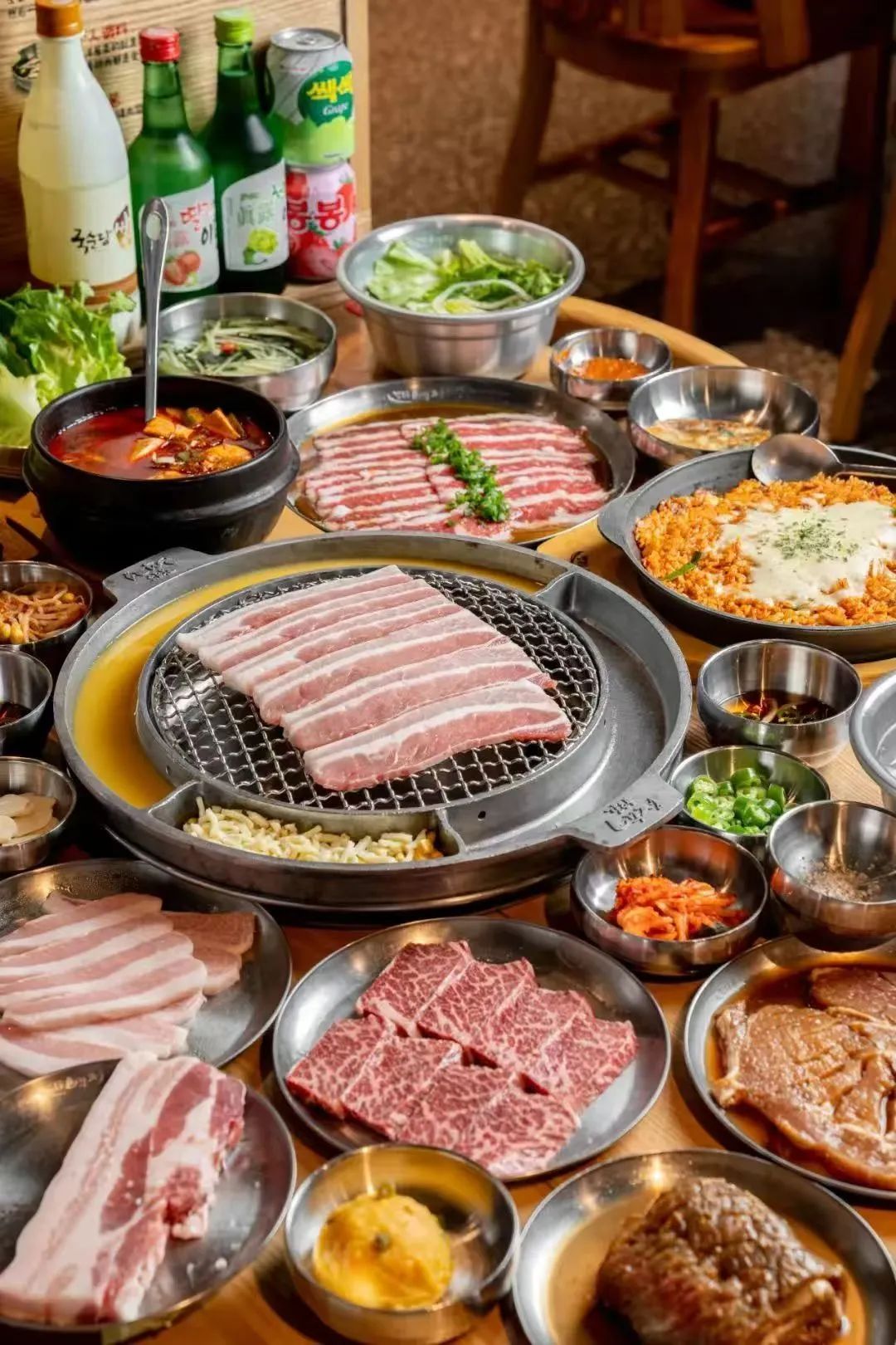 韩剧同款美食这里也有——姜虎东白丁烤肉的招牌大肠和雪花肉,烤得滋滋作响,香气扑鼻;