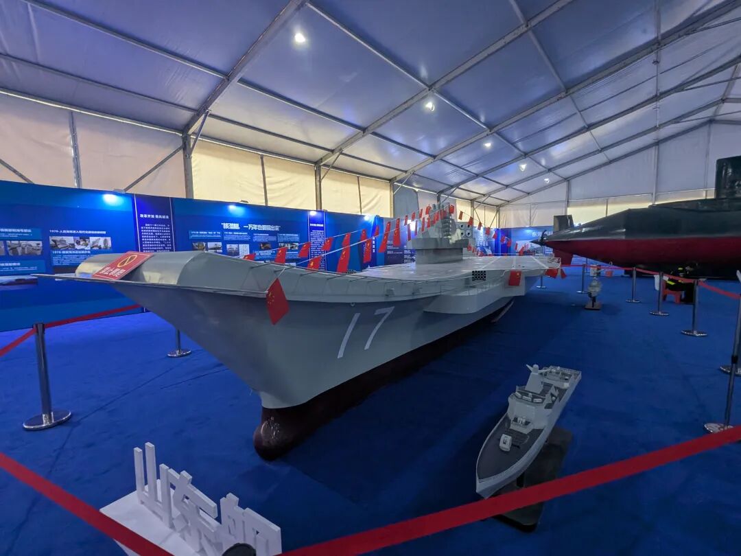 走进展厅,从1:48比例的福建舰模型到长征五号火箭模型,一件件融合尖端科技与创意设计的重磅展品为观众带来视觉盛宴。最吸引眼球的是歼-20战斗机,中国版"星际迷航"白帝战机、历经战火洗礼的79式主战坦克,游客可近距离感受它们的工艺细节。