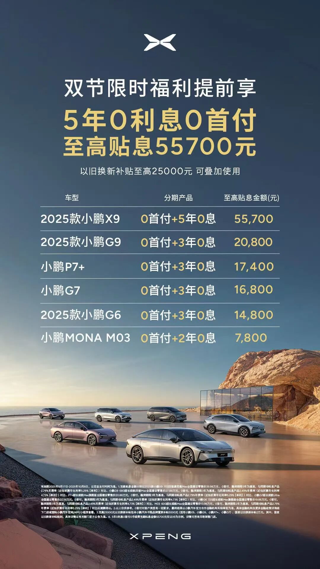 小鹏G9:享5000元优惠或两年免息,二选一。