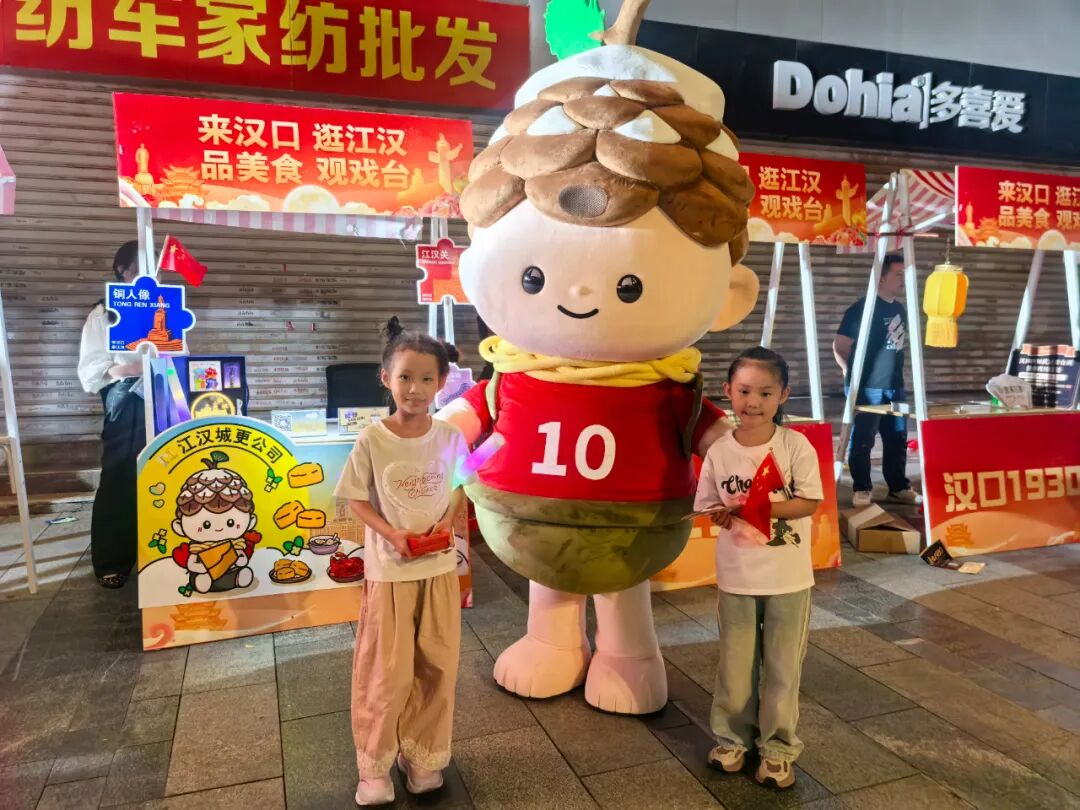 江汉城市更新有限公司打造的“真人扮演松仔互动+扫码领文创”环节成为活动的亮点。憨态可掬的“松仔”挥手比心,吸引居民纷纷上前拥抱、摆趣味pose同框留念。现场扫码关注可领取融汇江汉文化元素的文创礼品,这些“小文创”不仅为消费者带来了全新的文化体验,更成为推动文旅消费的重要力量。