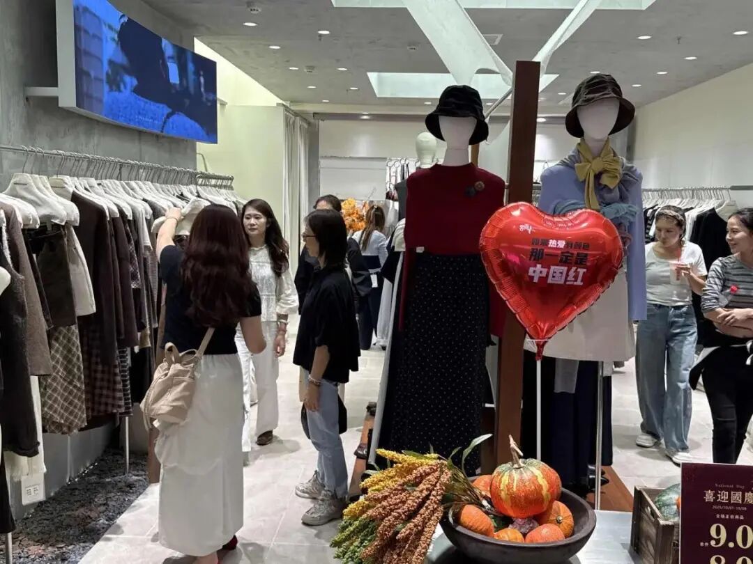 国庆期间,云尚商场内,秋季上新如火如荼。云尚千家商户集体上新数万款秋装,涵盖女装、男装、童装、鞋帽配饰等全品类。不少店铺品牌选择在假期前夕提档升级,推出新货品新活动揽客,A馆1楼的PHOEBE CHIC以一场户外大秀拉开十七周年品牌升级亮相全新形象,主打韩系高端女装;在A馆2楼,江汉大学时尚设计作品展吸引了不少设计爱好者驻足;B馆1楼多家韩系女装店铺完成升级,推出今秋爆款;C馆的女装店则囊括街头、辣妹、极简、新中式等多种风格,满足不同消费者的时尚需求;D馆潮牌男装云仓品牌10月1日开业推出时尚走秀、免费赠衣等活动,店内挤满了消费者。