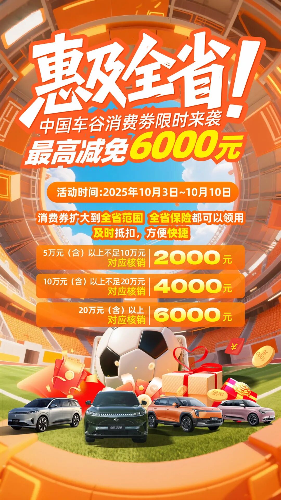 买车就买“车谷造”,最高减免6000!中国车谷消费券国庆中秋限时来袭,“惠”及全省
