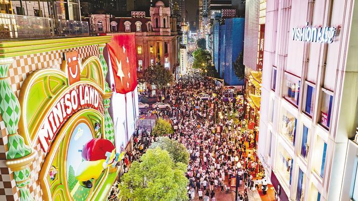 10月4日晚,大批市民游客前往武汉江汉路步行街,川流不息的人群一眼望不到头。武汉夜间消费场景升级,打造“游购娱食”一体化夜游体系,吸引众多消费者,“夜间经济”活力满满。