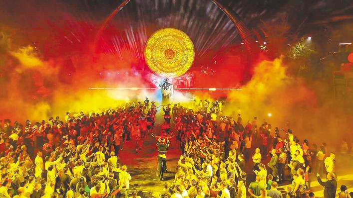 10月4日,通城县药姑山古瑶村推出大型沉浸式民族史诗实景剧《瑶望千年·云歌》,打造全新视听盛宴。(湖北日报通讯员 胡强 摄)
