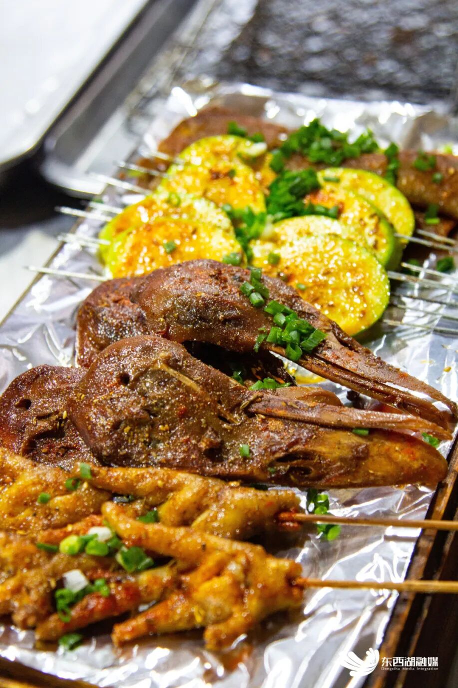 夜幕越沉,店里越热闹。烤架上的滋滋声与食客的谈笑声相融。章健翻烤着串串,妻子忙着招呼客人,夫妻二人的默契,藏在递签子的瞬间,也藏在每一串用心烤制的美味里。这家藏在东西湖街角的小店,凭着新鲜的食材、独家的调味和一家人的用心,成了无数人深夜寻味的归宿。