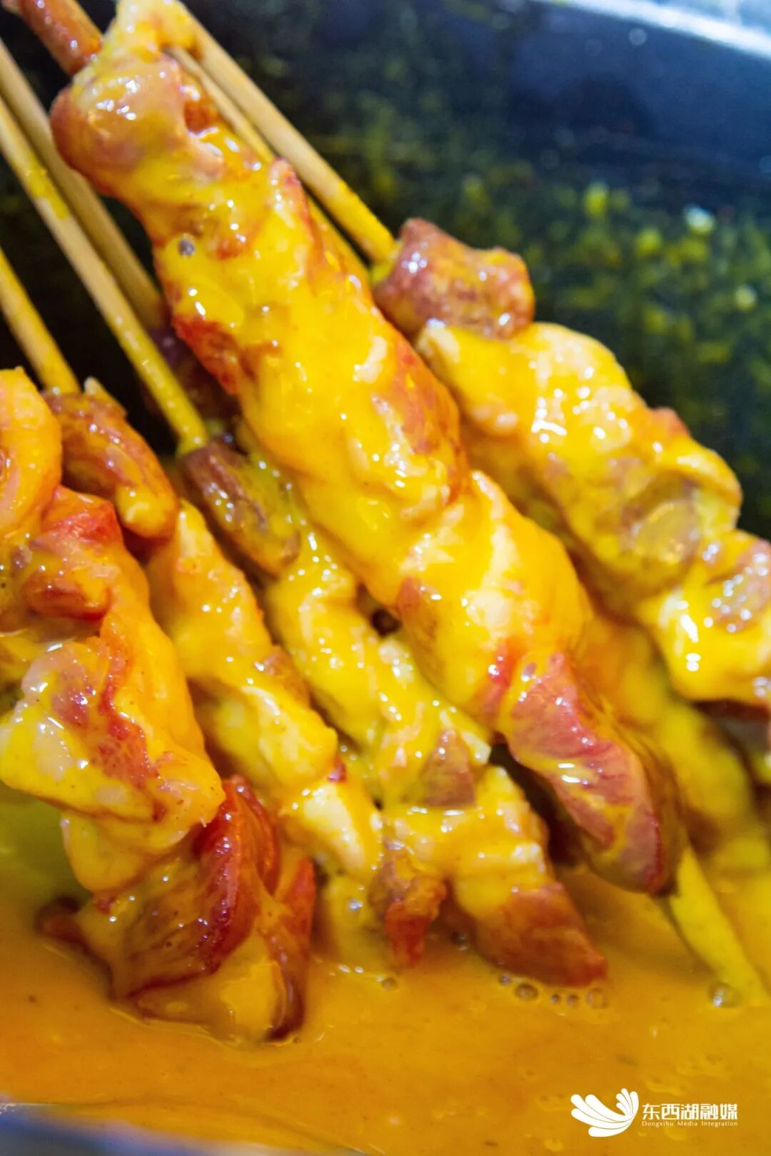 “咱做新疆菜,食材得对得起家乡味。”阿卜操着略带口音的普通话,指着挂着的羊肉说道。不同于常见的烤串,他家的烤串格外讲究,羊肉烤制前要裹上一层特殊料汁——用新疆邮寄来的调料与鸡蛋充分搅匀,黏稠的汁水裹着肉块,在灯光下泛着温润的光泽。