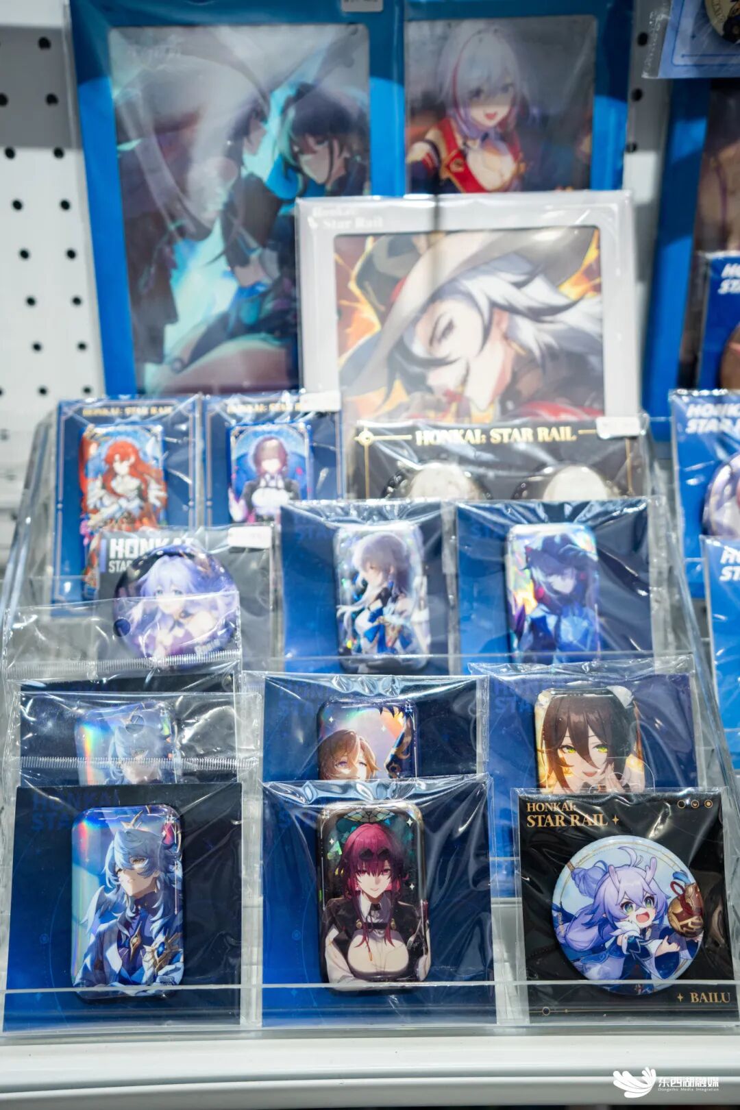 走进她如今位于吴家山中心广场的店铺,琳琅满目的二次元周边令人目不暇接。游戏类如《第五人格》《明日方舟》《恋与深空》《光与夜之恋》等热门作品的周边占据着显眼位置;动漫类则以《时光代理人》《非人哉》《罗小黑战记》等现象级番剧的衍生品为主。这些承载着高人气IP的徽章、立牌、色纸、痛包等,吸引了大量消费者驻足选购。