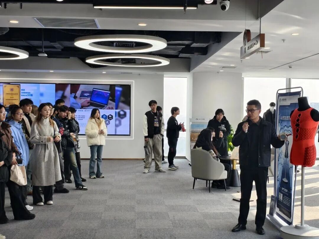 近日,江汉大学师生团队赴武汉时尚跨贸产业园进行校企合作交流。师生们参观了产业园核心展厅,详细了解“长江云裳链”AI大模型在纺织服装全产业链的应用场景,并就跨境电商运营、品牌出海等前沿议题与园区负责人展开深入探讨。