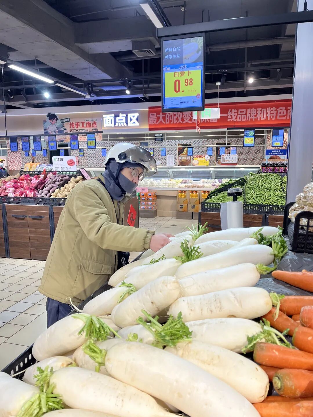 在武商超市南湖店,蔬菜价格同样十分稳定,其中,红菜薹和广东菜心1.99元/斤,大白菜秧2.58元/斤,本地茼蒿3.99元/斤。门店主管陆巍表示,该店生鲜菜价并未因为雪天发生变化,“目前蔬菜的库存货源充足,保证市民可以买到新鲜实惠的蔬菜”。