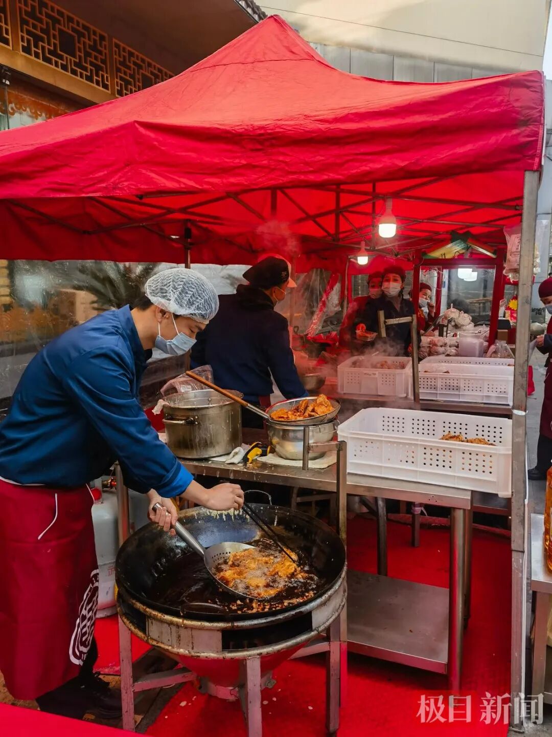 发布日期:2026-01-26 08:52:03 文章来源:武汉市老字号协会炸货嗞嗞作响,香气漫过街巷。1月23日上午,承载着江城百年烟火的老字号德华楼六渡桥店正在开展第五届年货节,热气氤氲、人流涌动,现炸鱼块、藕夹、肉圆、雪白的水磨年糕,还有汤包、水饺等冻品一字排开,每一样都裹着浓浓年意。武汉市民老早来到摊位前,抢着买走第一锅新鲜出炉的美食。