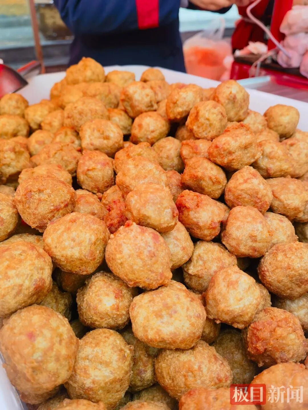 记者现场了解到,从早上7点开卖到9点多钟,短短两个多小时现炸肉圆就已经卖出100多斤,成为当日爆款。