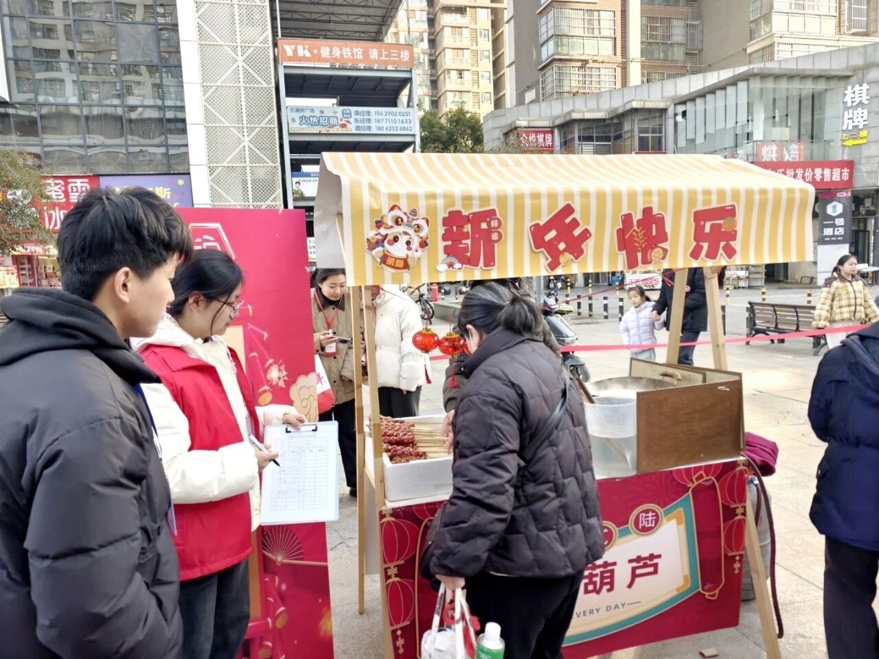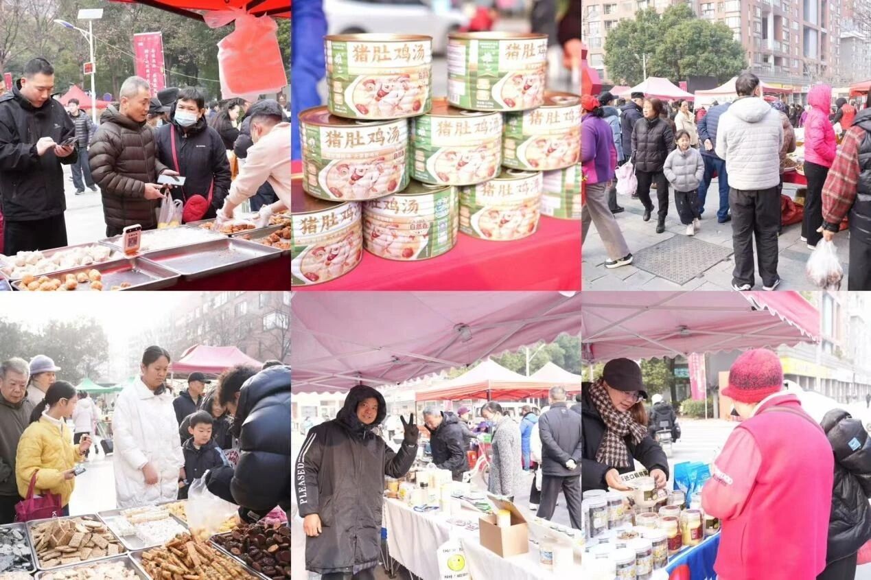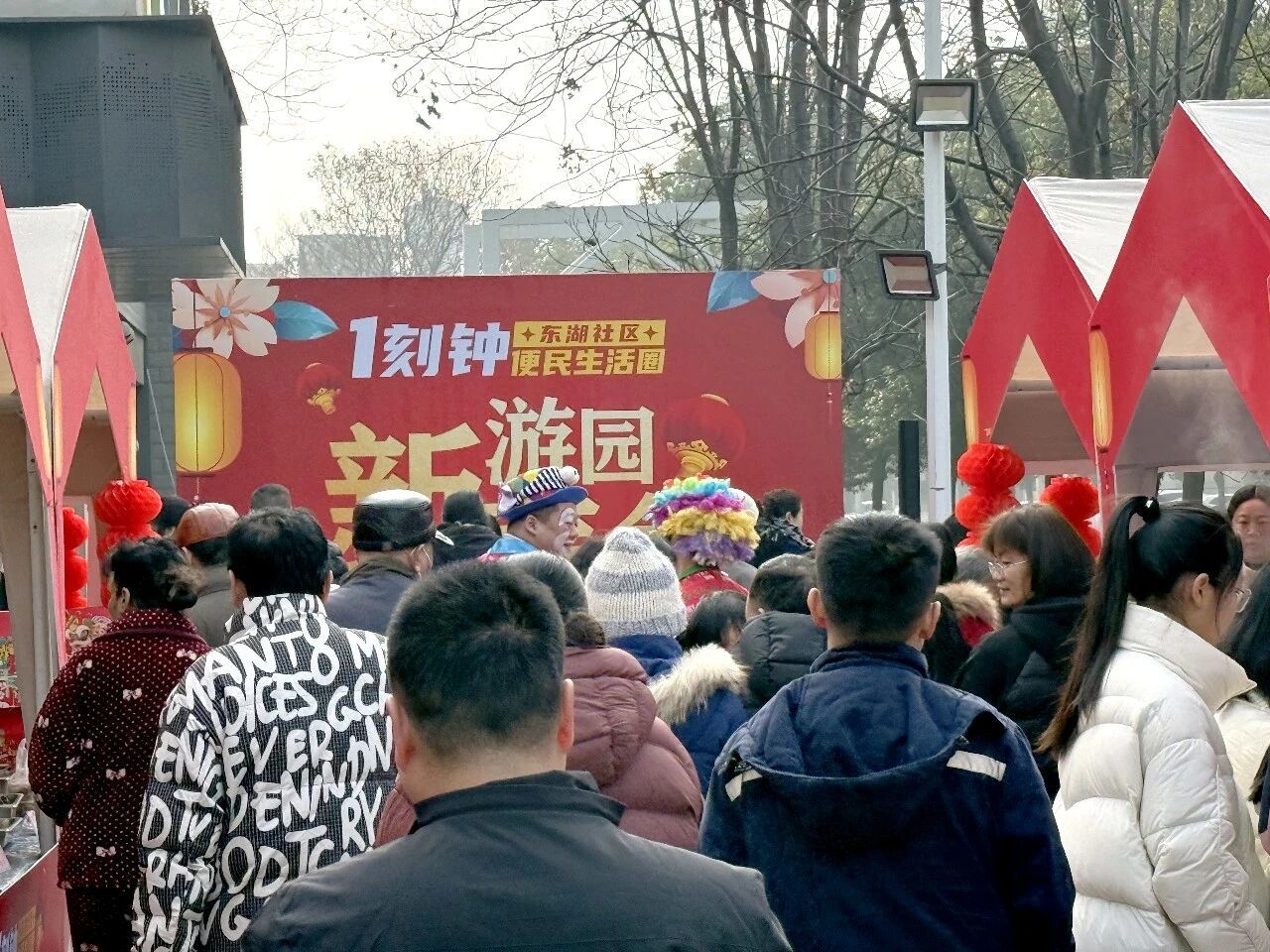 东湖社区开展小年“便民一刻钟”新春游园会。非遗民俗区展示糖葫芦、糖画、捏面人技艺;年货团购会提供汉吉福年画、有机蔬菜等特产;“套好运”游戏与打卡点拉近邻里距离,活动从上午9时持续至下午14时,人气爆棚。