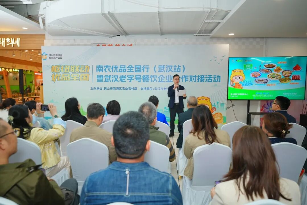发布日期:2026-04-02 10:35:35 文章来源:武汉市老字号协会3月31日,以“枢纽联动 优品全国”为主题的南农优品全国行(武汉站)暨武汉老字号餐饮企业合作对接活动,在武汉汉商银座购物中心顺利举办。本次活动由佛山市南海区农业农村局主办,武汉市老字号协会全程支持,两地政企代表、食品企业负责人齐聚江城,共探产销对接新路径,共谋产业合作新发展。