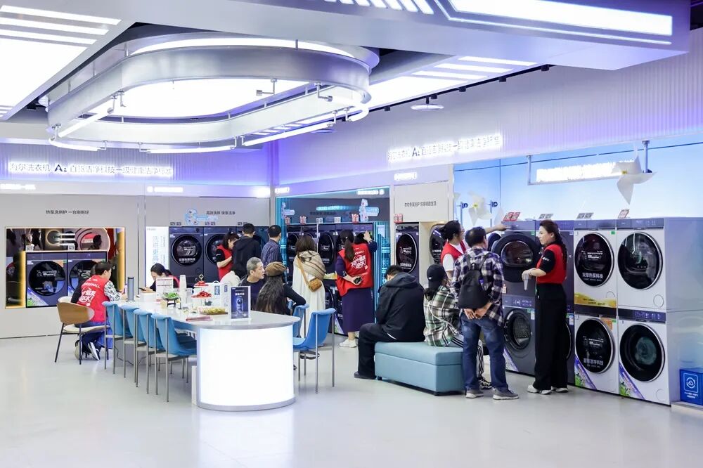 支点财经记者在现场看到,京东MALL王家湾店主打分层场景化布局,为全家老小打造专属乐趣空间。一层主打潮玩数码、通讯数码等潮流品类,智能机器狗灵动互动,智能下棋机器人坐镇棋区,爆款炫酷机箱DIY搭配等,吸引潮玩爱好者纷纷驻足体验;二层以满足“生活小资”需求为特色,各类咖啡机、面包机等新式小家电琳琅满目;三楼聚焦居家场景,其中京东自营家装全屋定制专区备受关注,一站式还原了客厅、卧室、阳台、厨房、儿童房等全实景家庭生活空间;四楼和五楼主卖大家电,AI百寸电视机、大八桶洗衣机、风不吹人空调等新品,吸引不少消费者“剁手”。