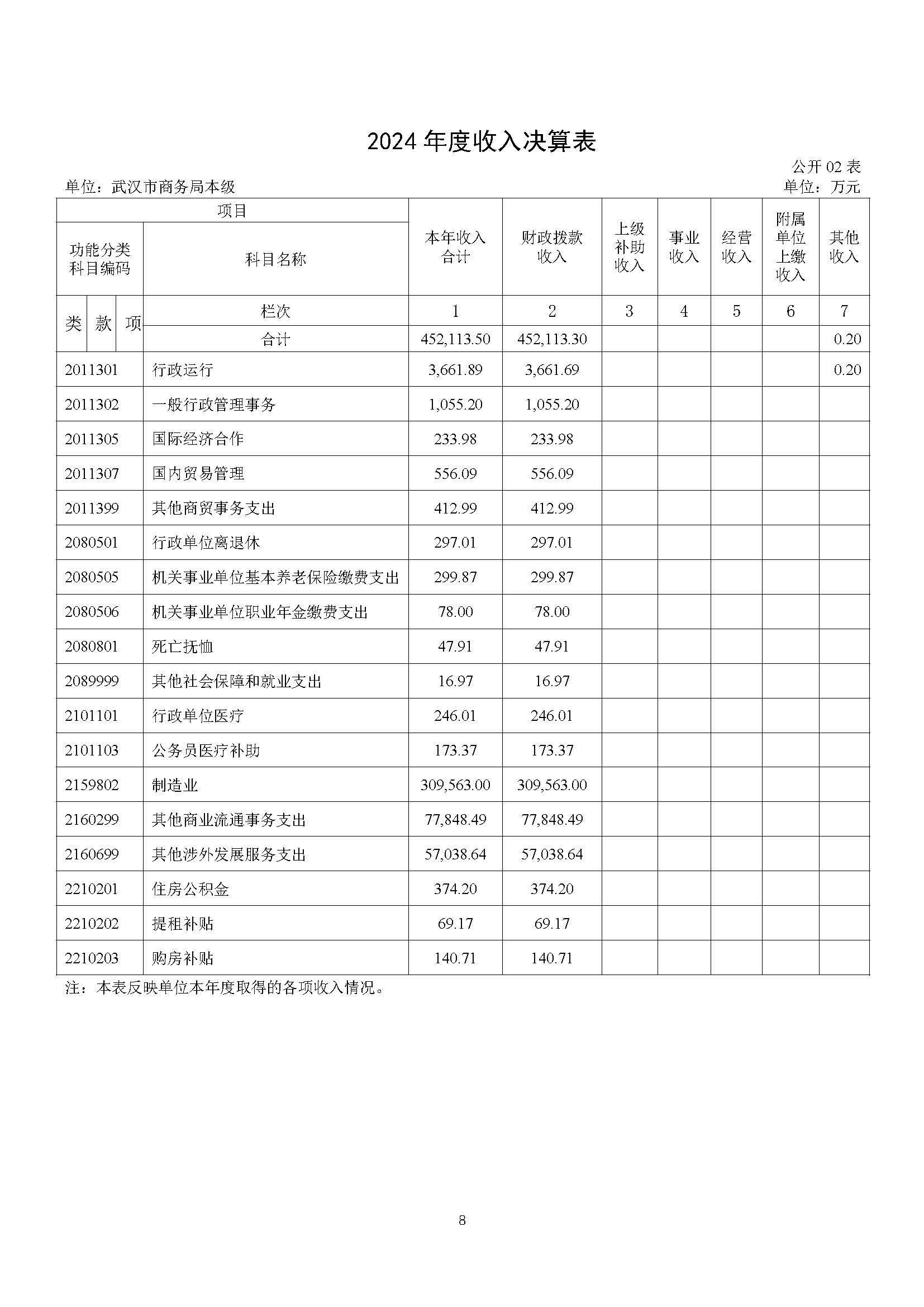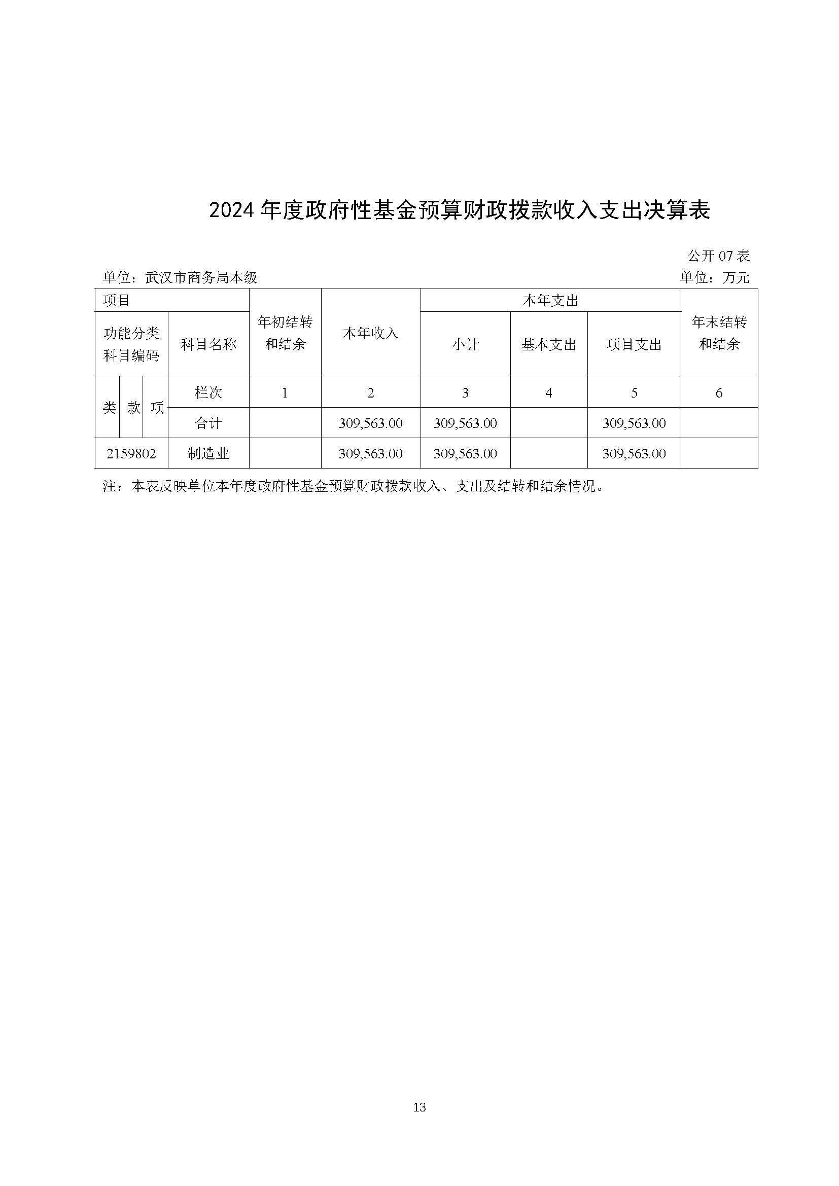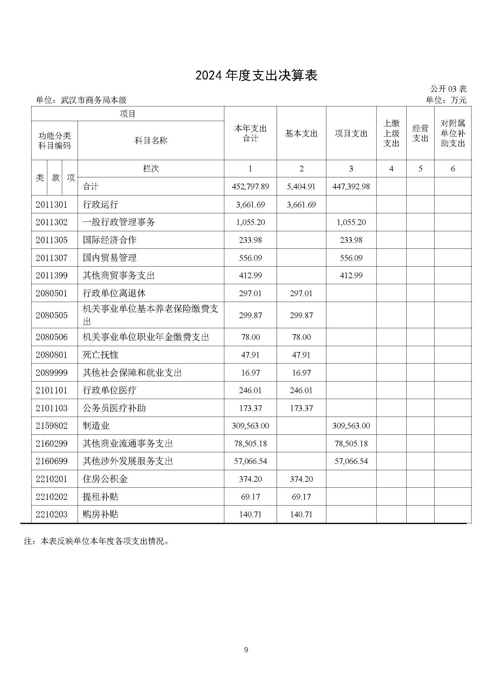 2024 年度武汉市商务局本级决算公开