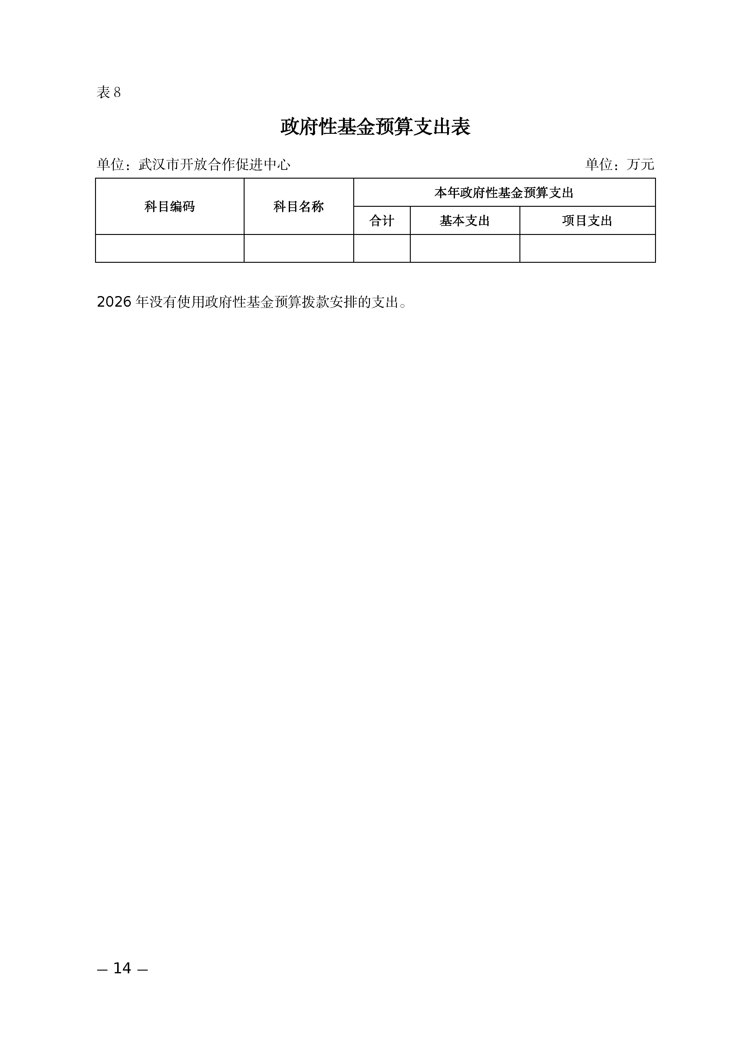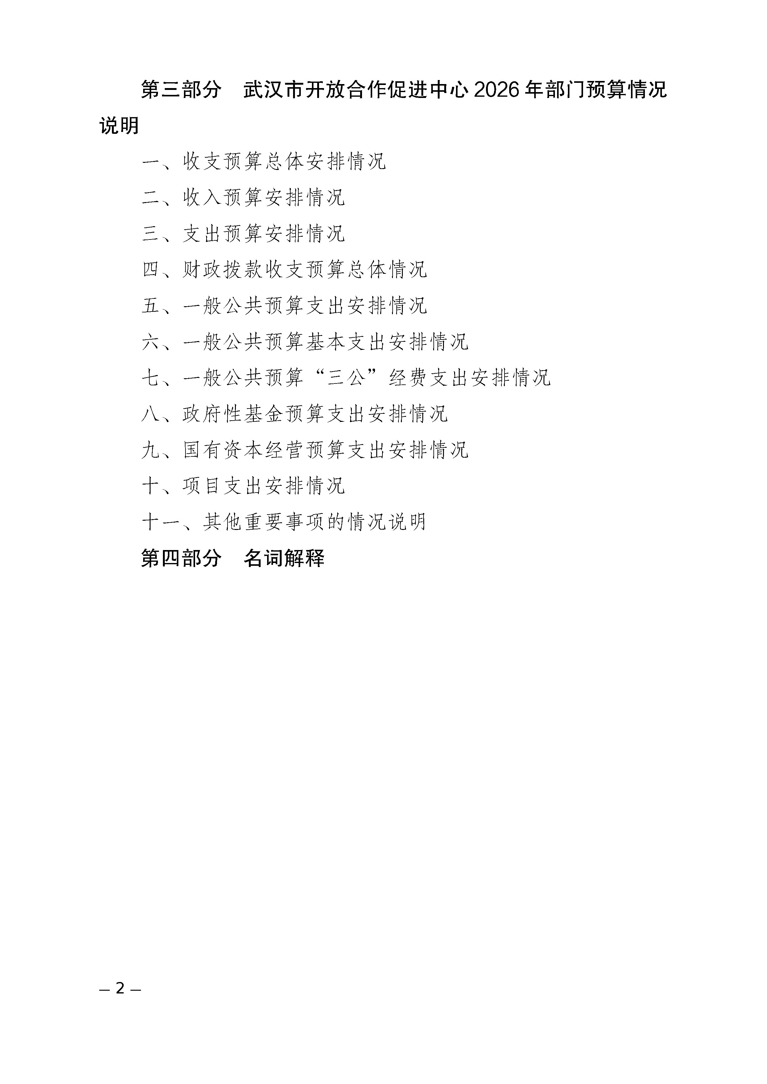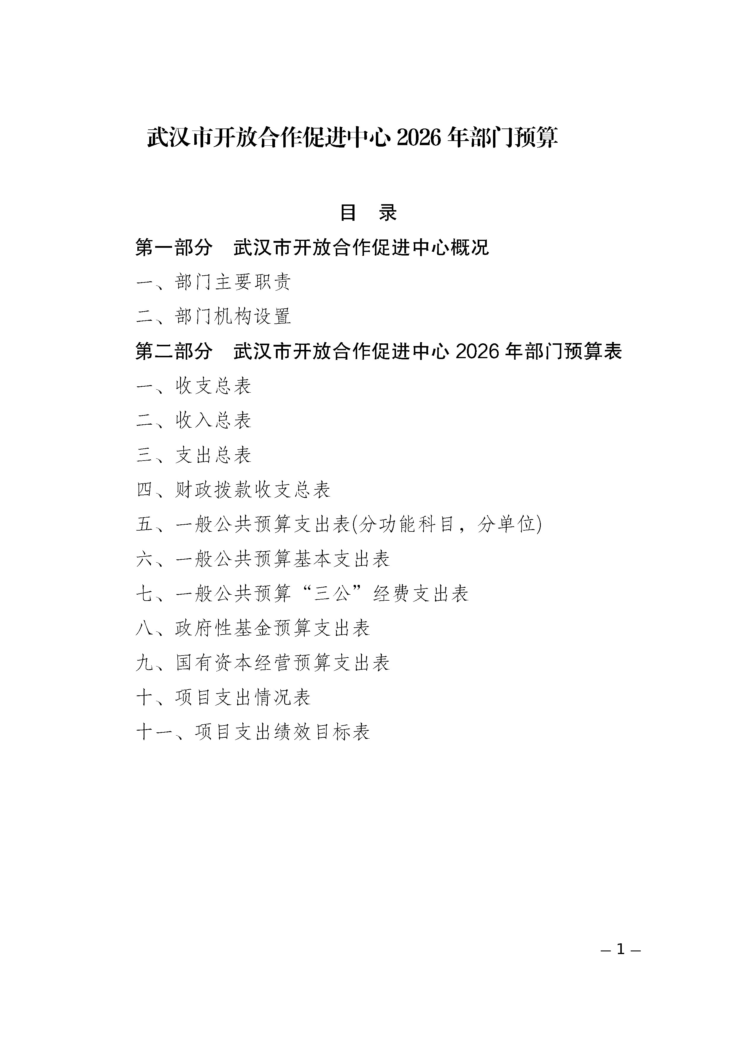 武汉市开放合作促进中心2026年部门预算公开