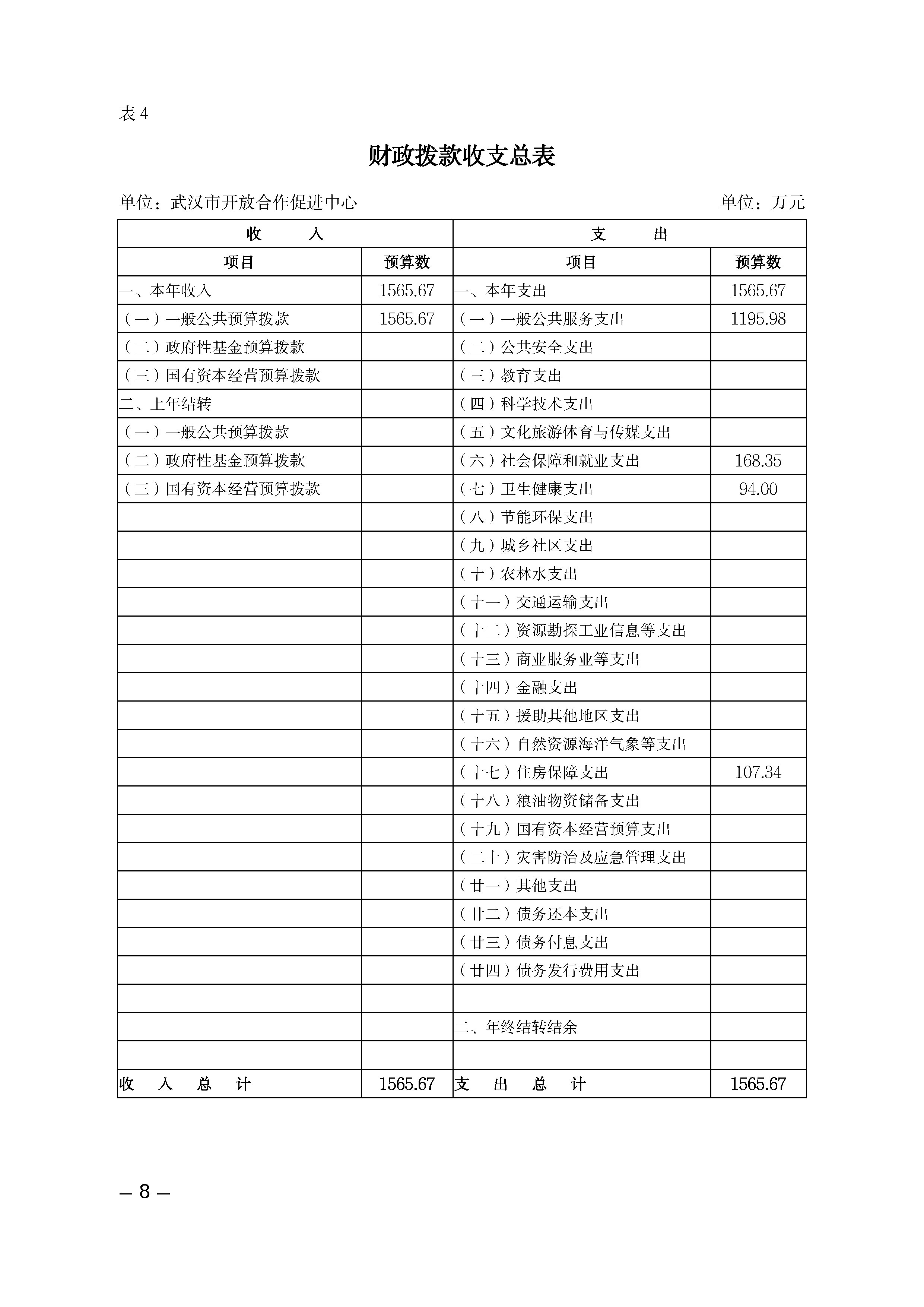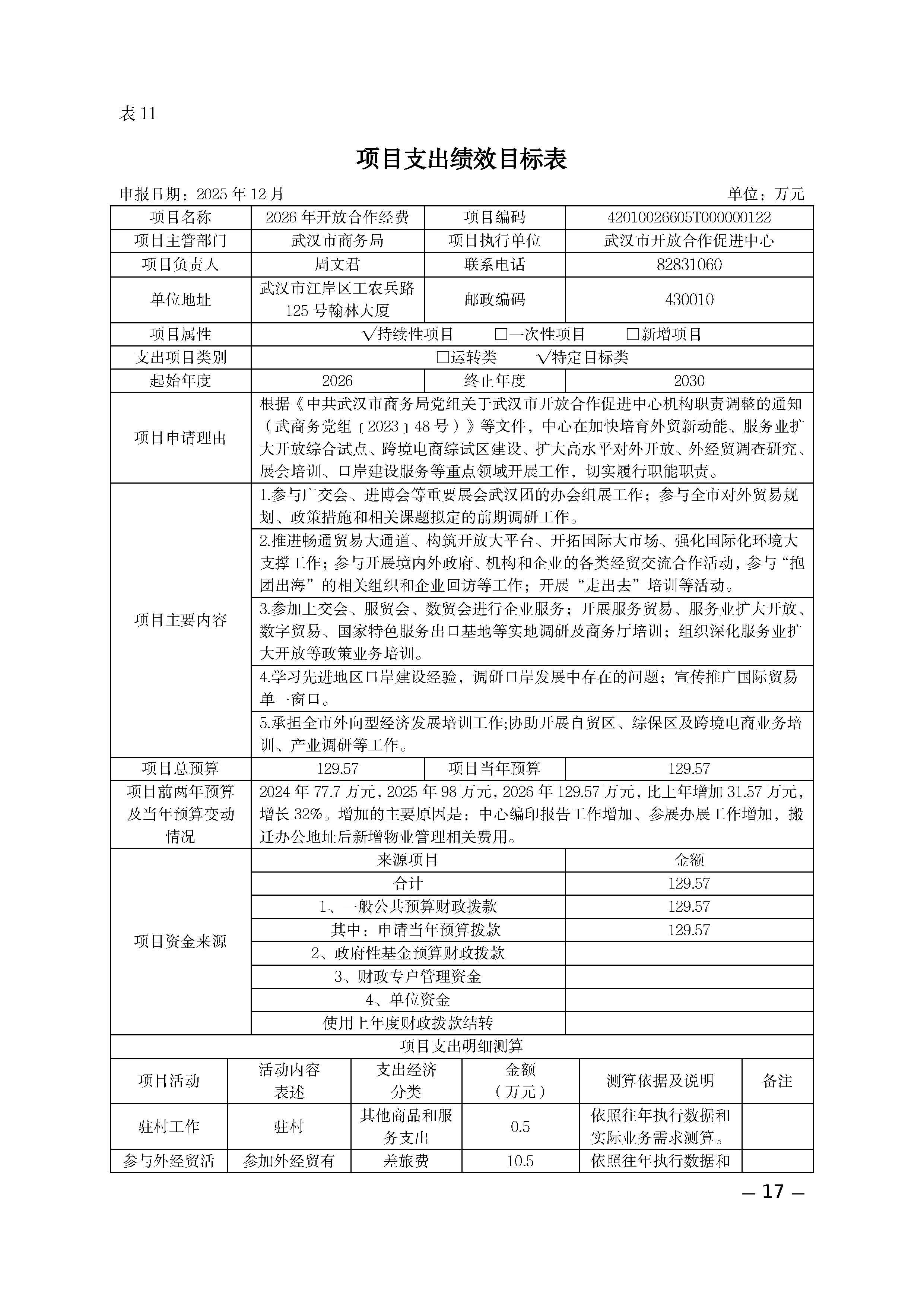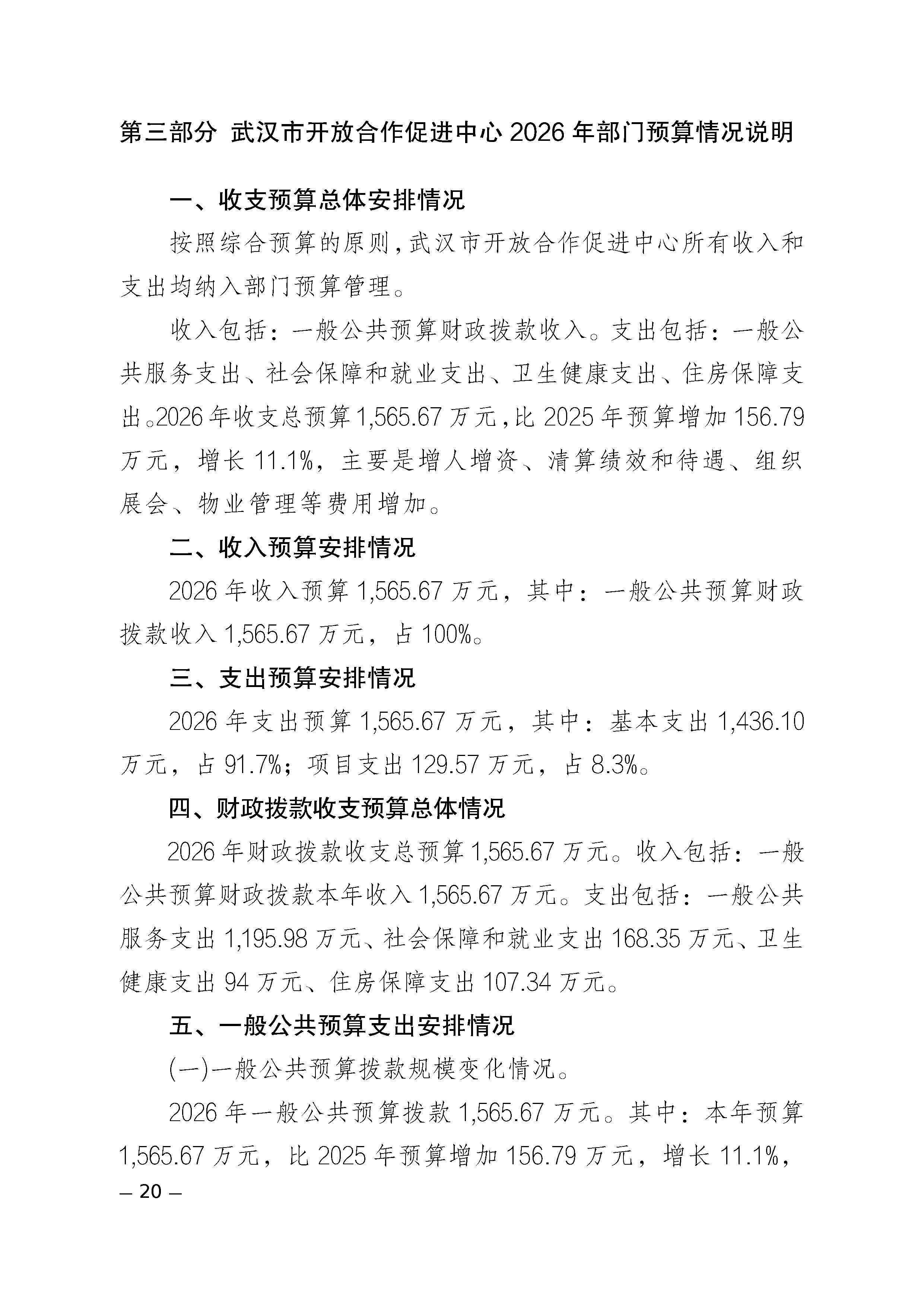 武汉市开放合作促进中心2026年部门预算公开