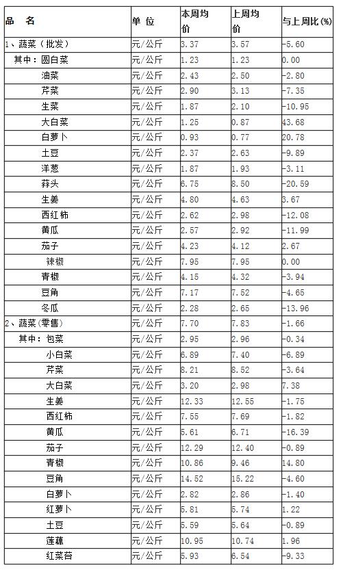 武汉市生活必需品市场监测情况周报表一(3月30日-4月3日)