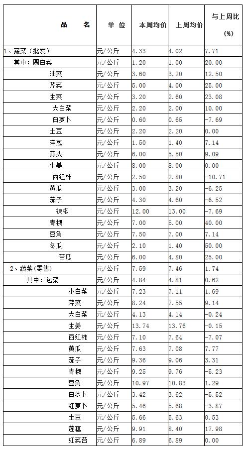武汉市生活必需品市场监测情况周报表一(4月13-17日)