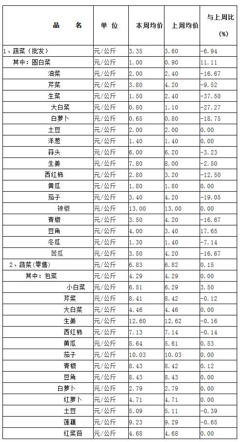 武汉市生活必需品市场监测情况周报表一(5月11-15日)