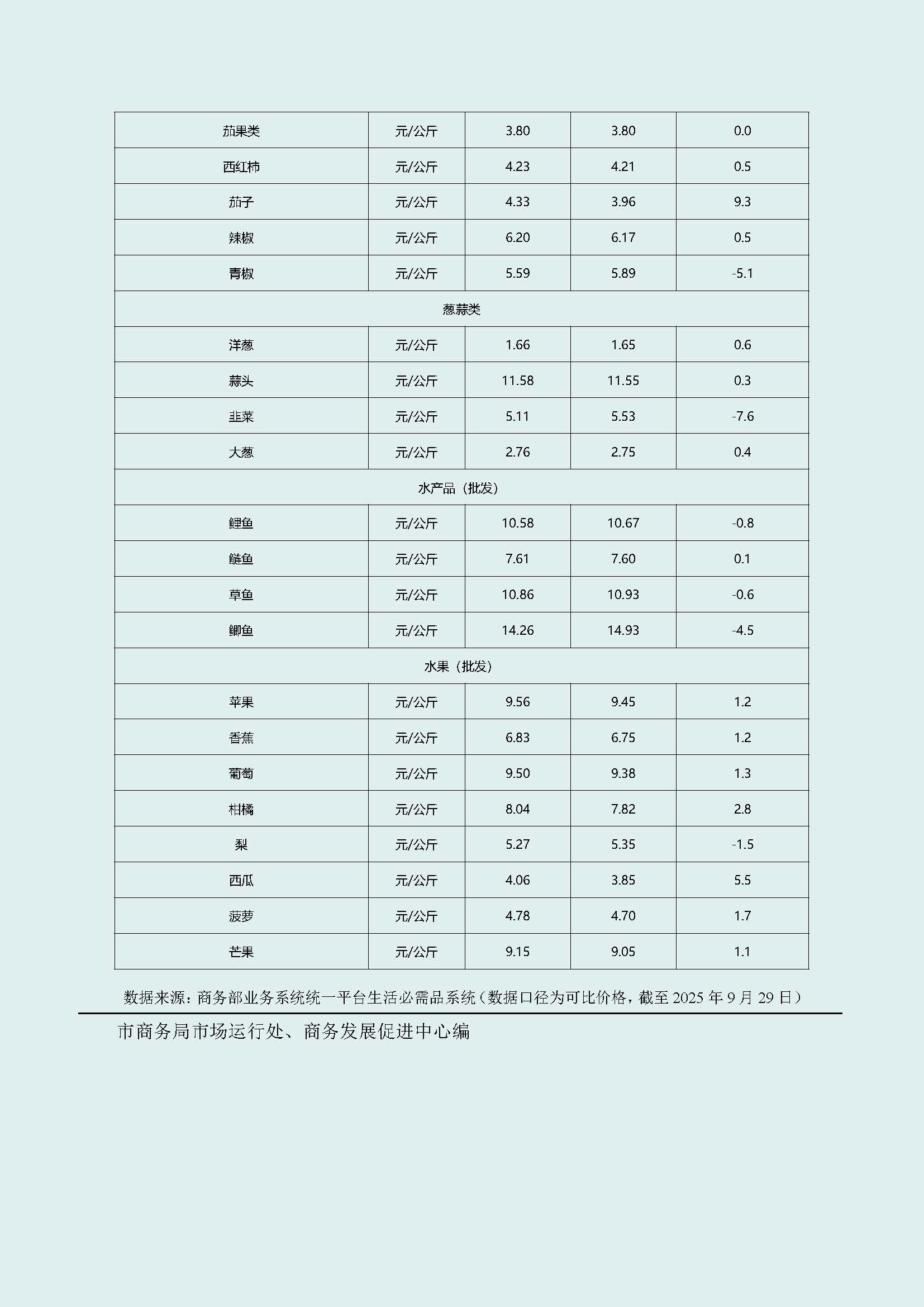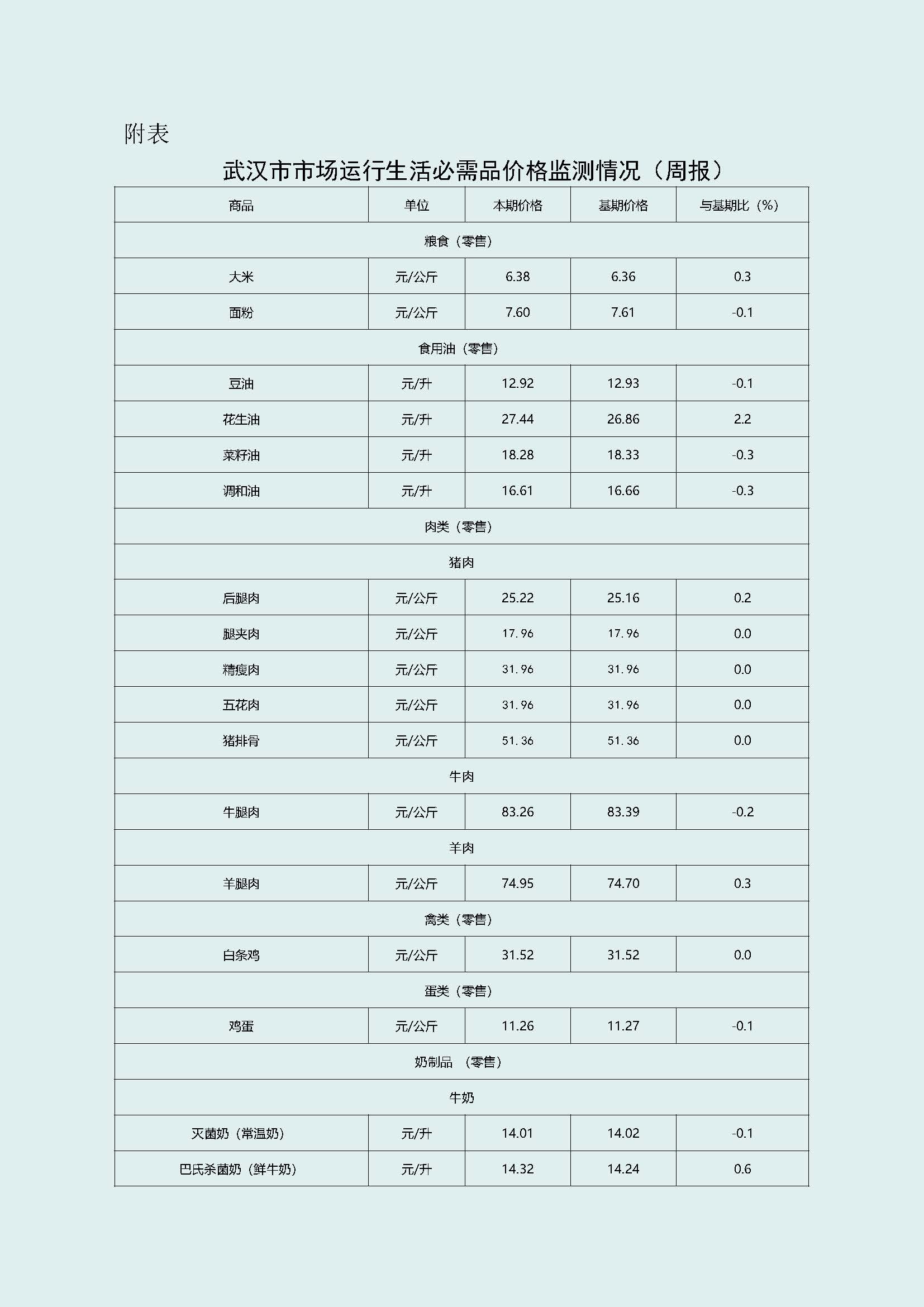 武汉市生活必需品市场监测情况(09月22日-09月28日)
