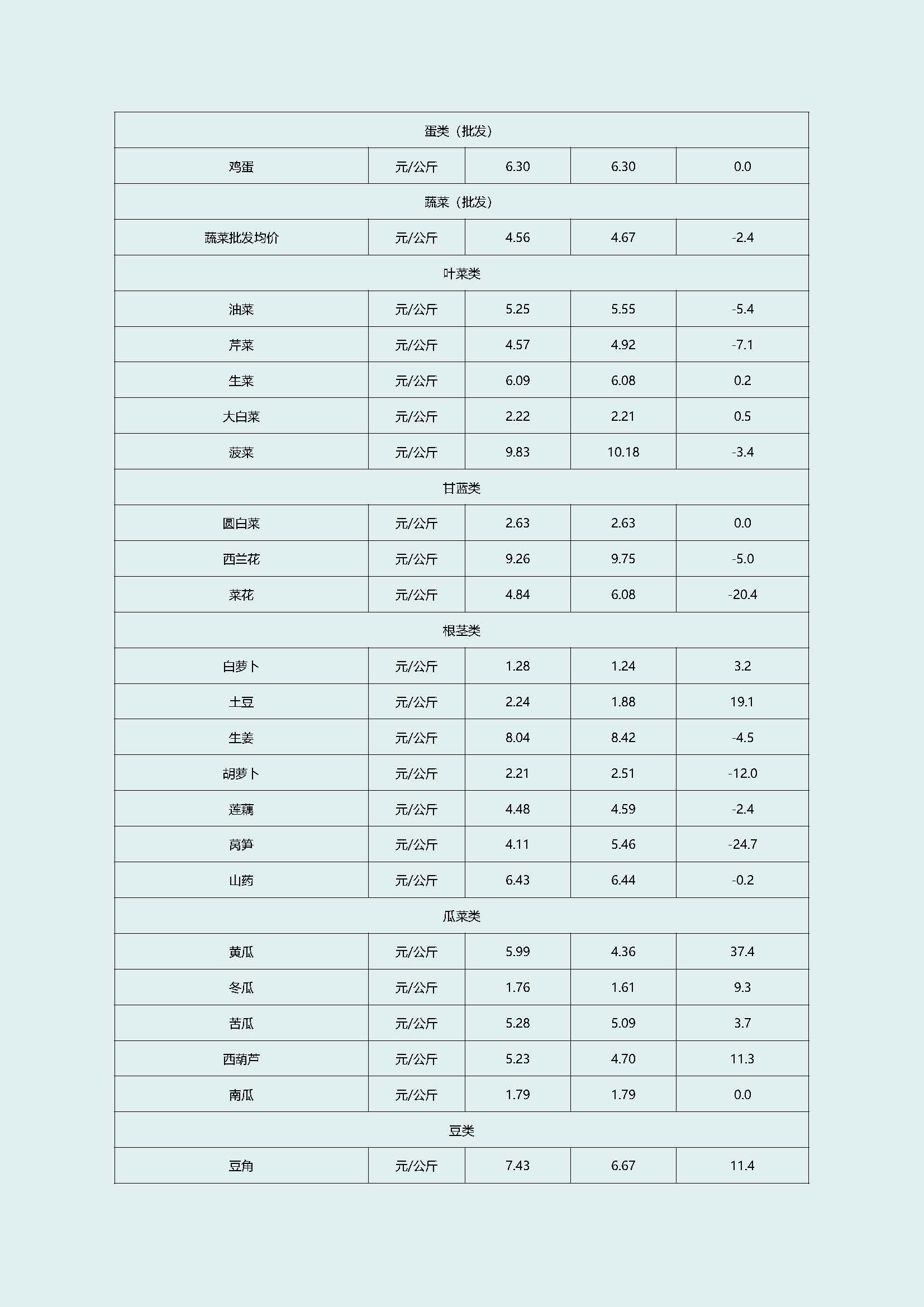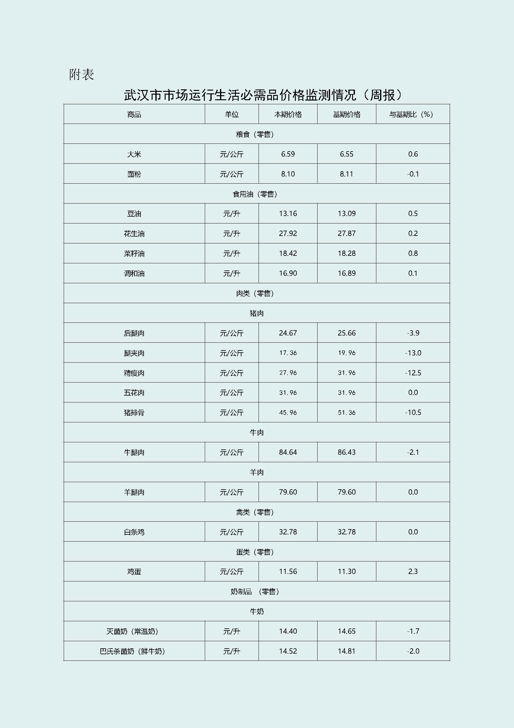 武汉市生活必需品市场监测情况(10月06日-10月12日)
