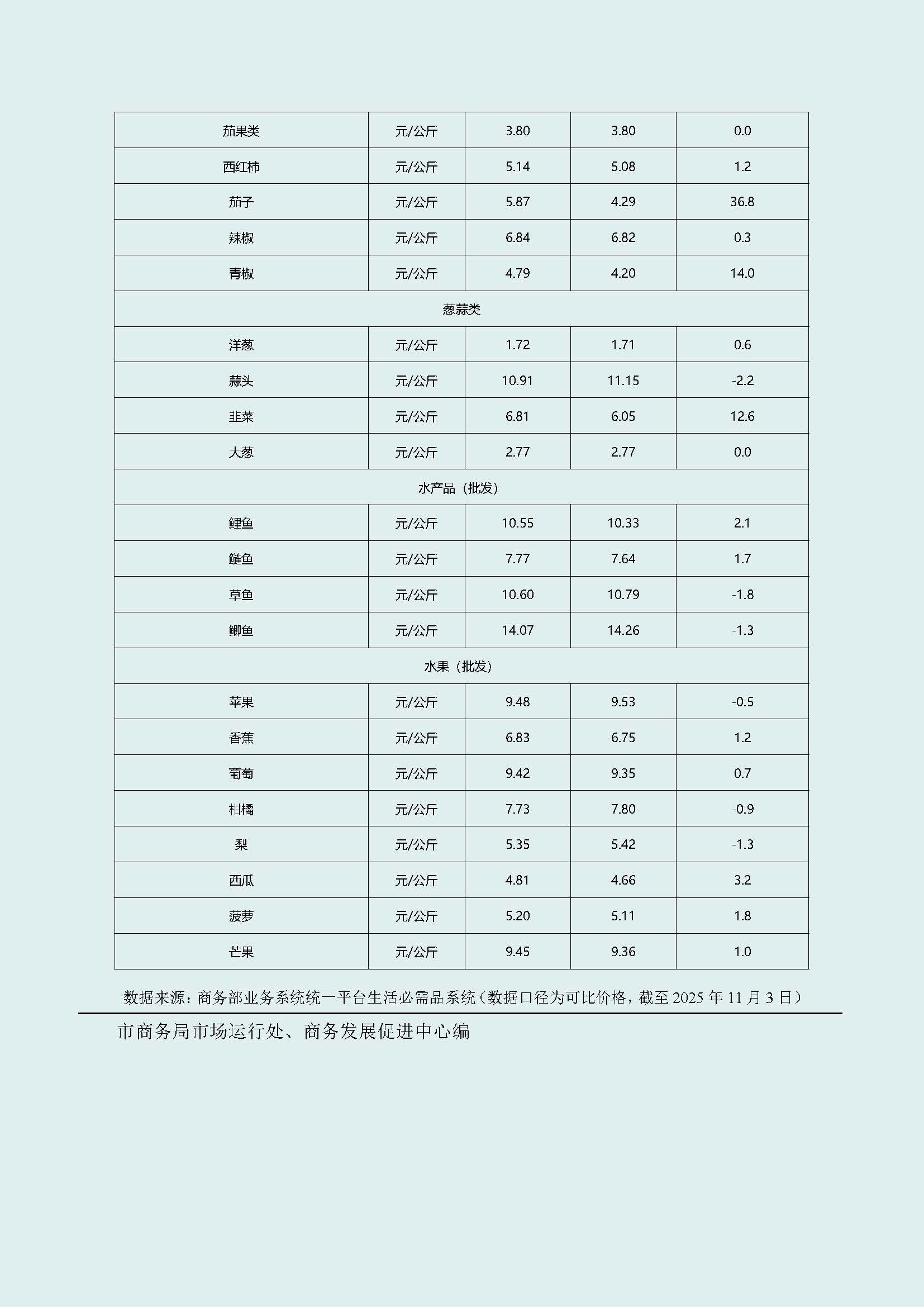 武汉市生活必需品市场监测情况(11月03日-11月09日)