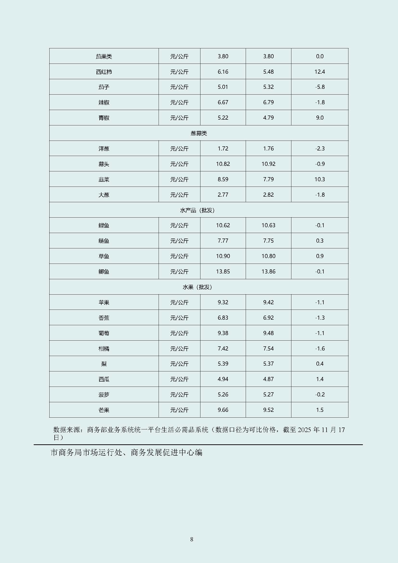 武汉市生活必需品市场监测情况(11月03日-11月09日)