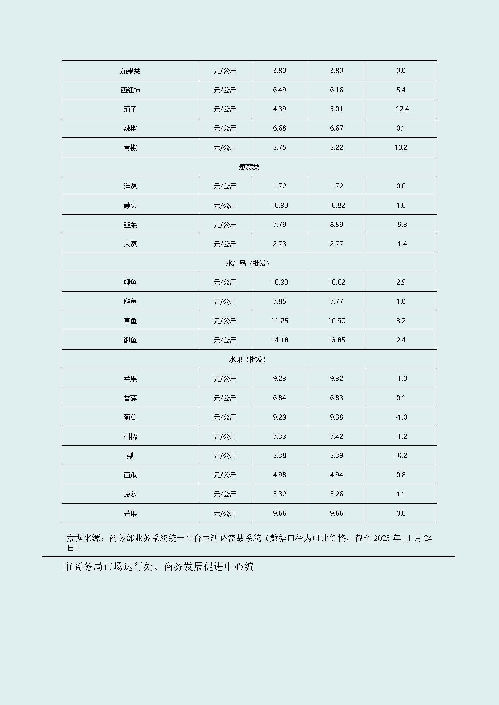 武汉市生活必需品市场监测情况(11月24日-11月30日)