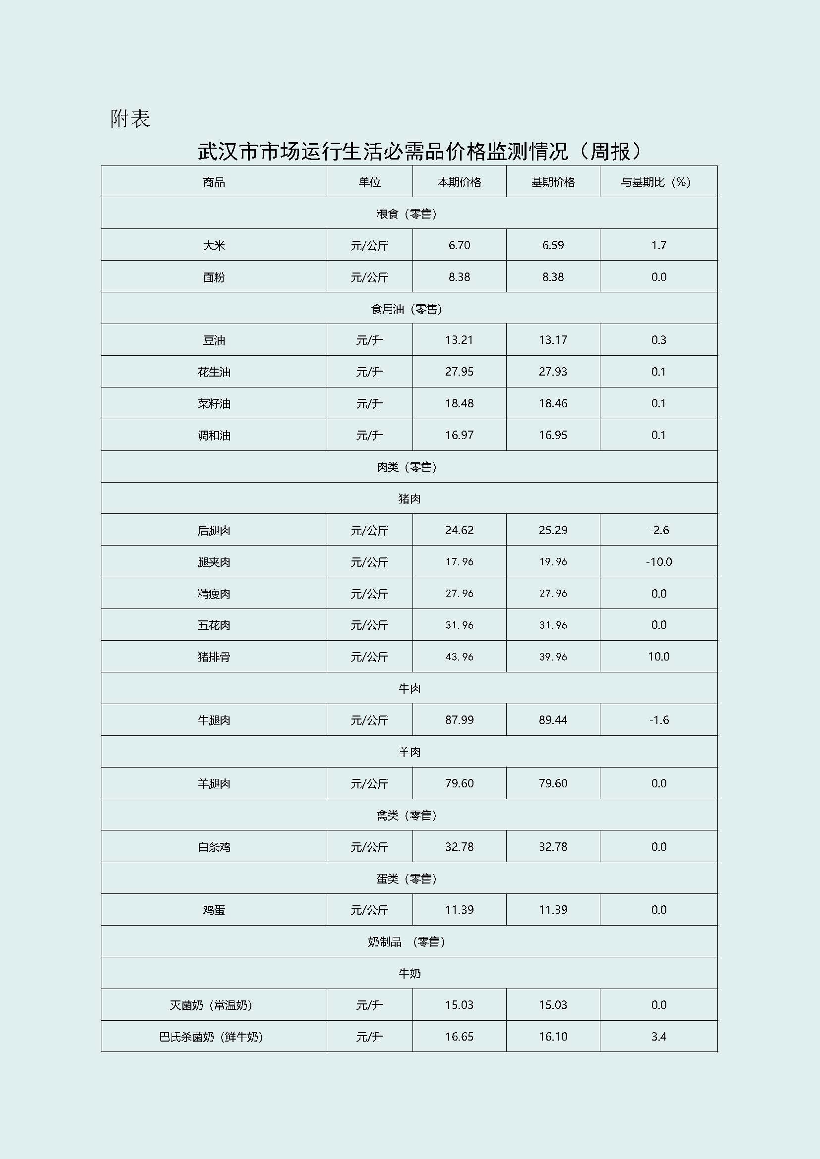 武汉市生活必需品市场监测情况(12月01日-12月07日)