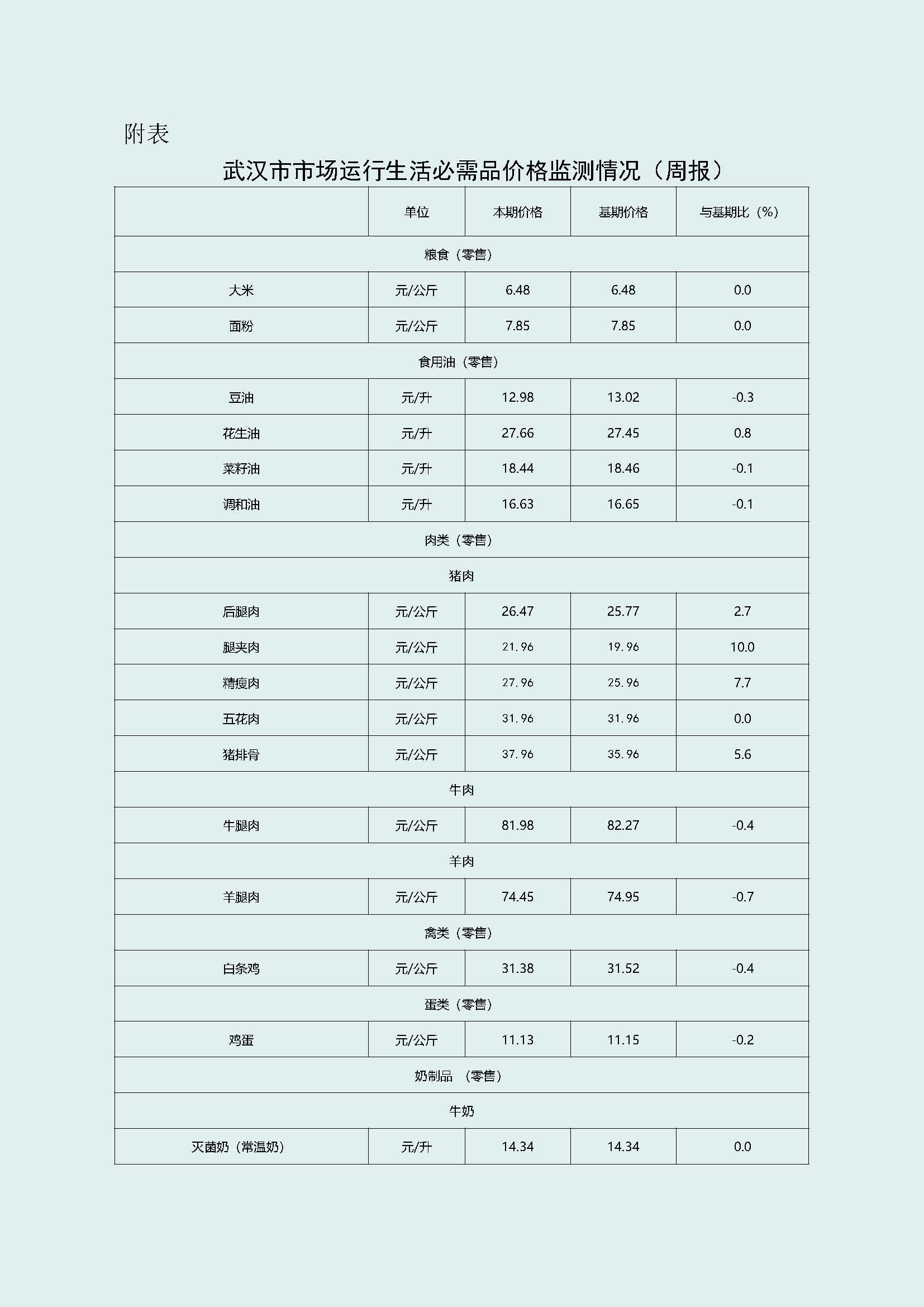 武汉市生活必需品市场监测情况(12月22日-12月28日)