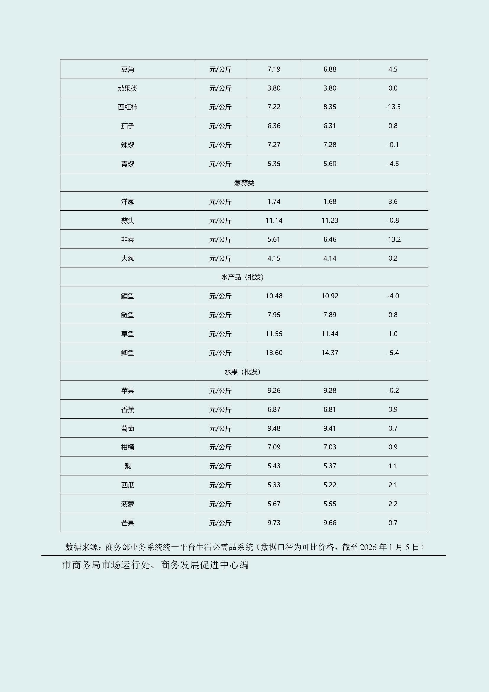 武汉市生活必需品市场监测情况(2026年1月5日—2026年1月11日)